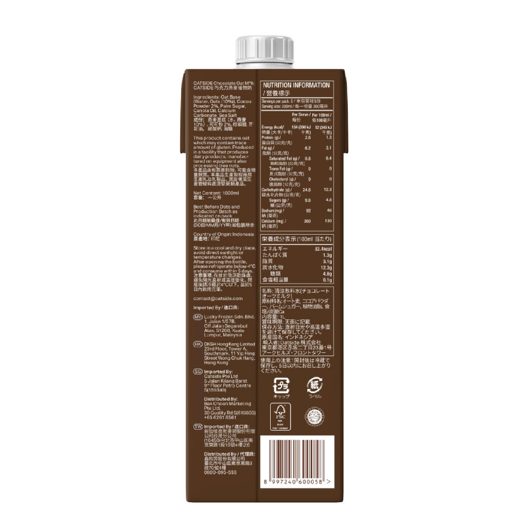 OATSIDE Chocolate Oat Milk 1L - Dairy Free, Rich, Made with Real Cacao