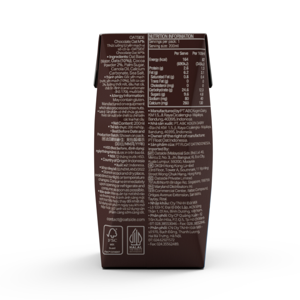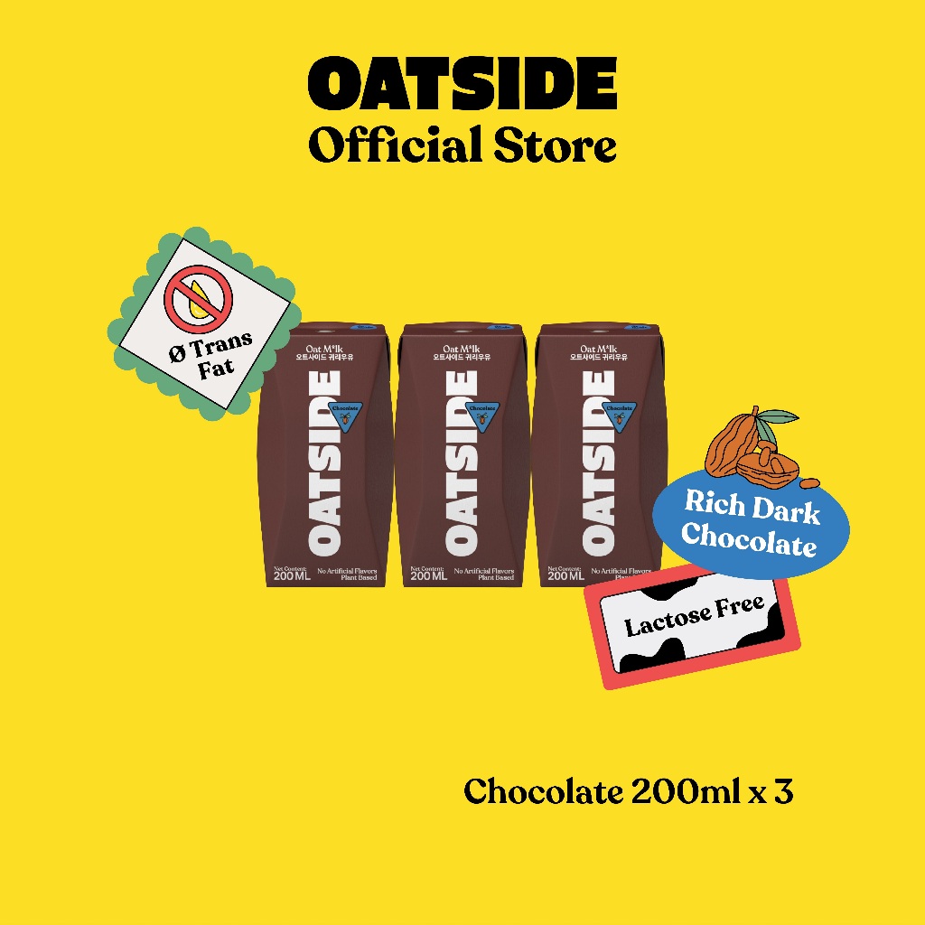 OATSIDE Chocolate Oat Milk 200ml x 3 - Dairy Free, Rich, Made with Real Cacao