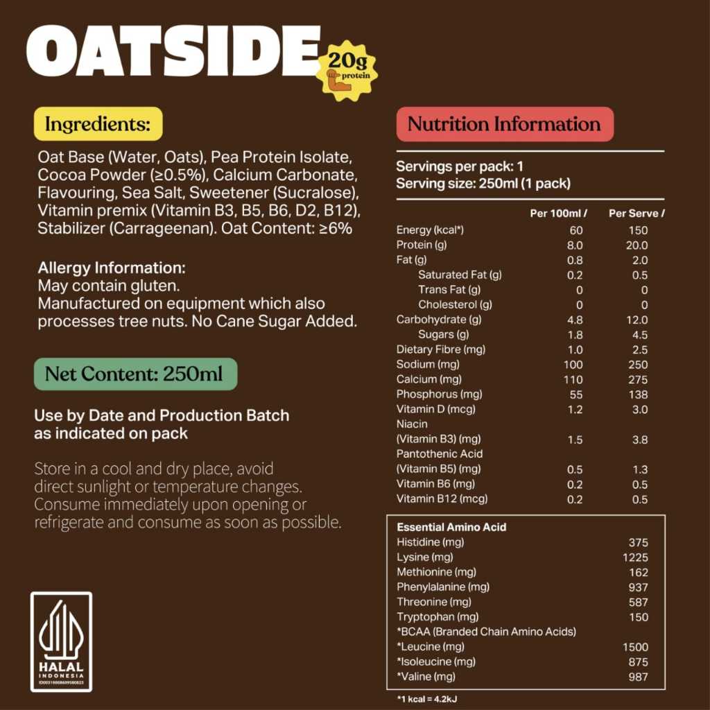 Oatside Protein Chocolate Oat Milk {250ml x 6packs}