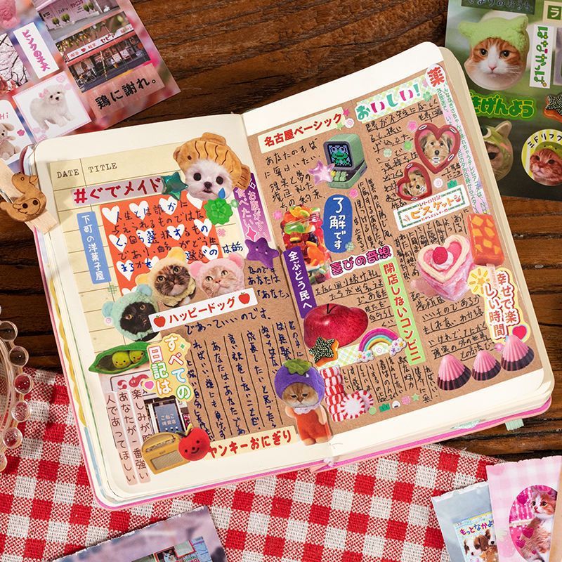 OHAYA | Japanese Sticker Book Ancient Style Cut Film Food Cute Sticker Material diy Gumei Handbook Material Mobile Phone Decoration Sticker Book juminocore heiseiretro