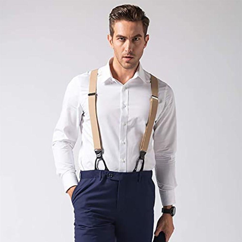 OKDEALS Braces Suspenders Wedding Party Trimmed Button End Y Shape Vintage Adjustable Strap Clip