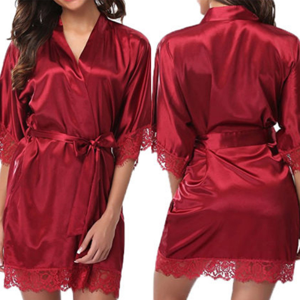 OKDSHOP Ladies Bath Robe Women Long Sleeve Babydoll Lingerie Nightwear Lace Kimono Dress