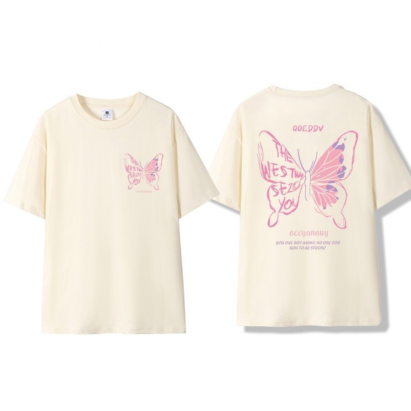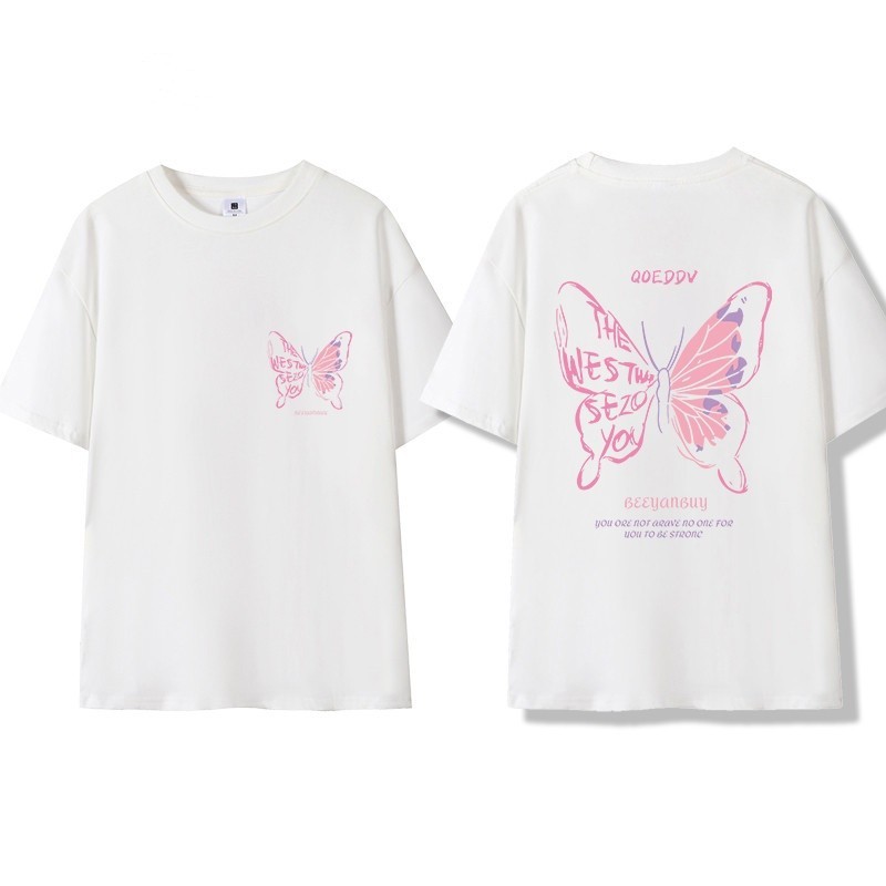 OKO Unisex Soft Comfort Cotton Short Sleeve Fashion Butterfly Print T-shirt Fashion For Man And Woman Casual Tee