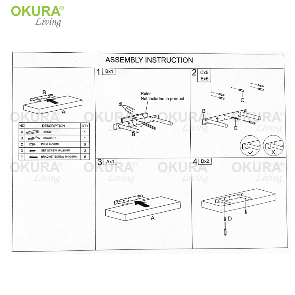 OKURA 1 Piece Sky Floating Wall Shelve Home Living 110cm (5cm Thickness) Wall Shelf Rak Hiasan Dinding