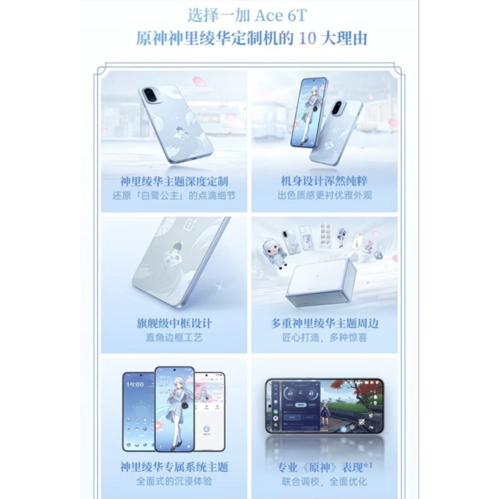 ONE PLUS Ace 6T - Kamisato Ayaka Edition Genshin Impact/ CN Rom / Snapdragon 8 Gen 5 / 8300mAh + 100w / 165Hz + 2K Reso