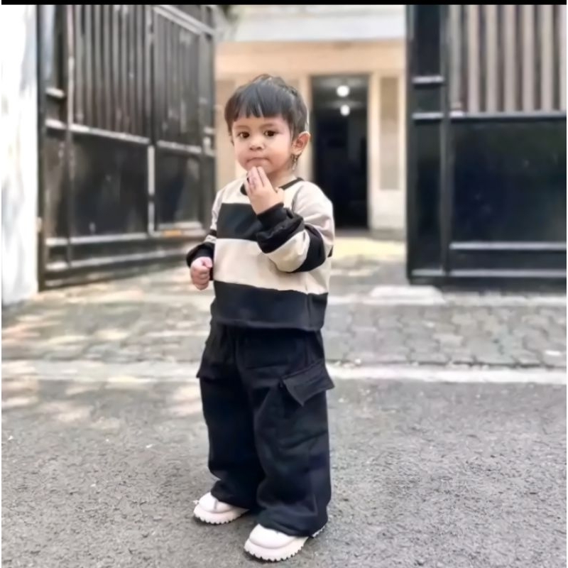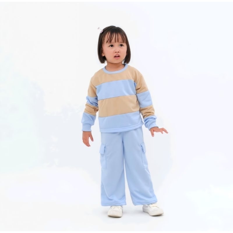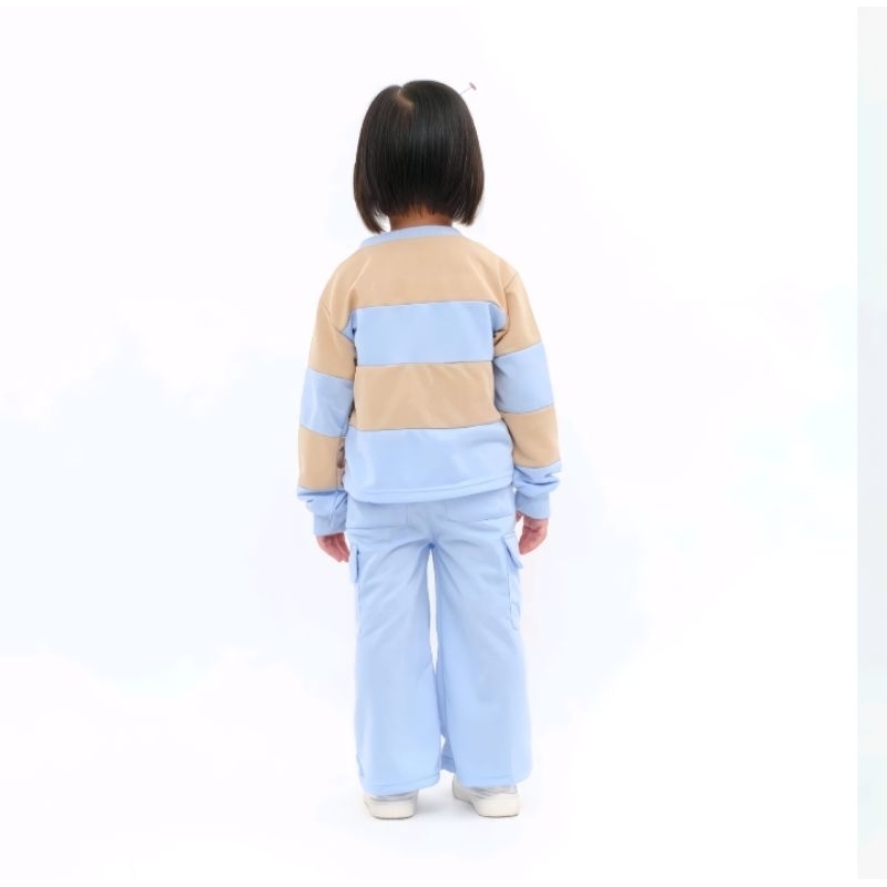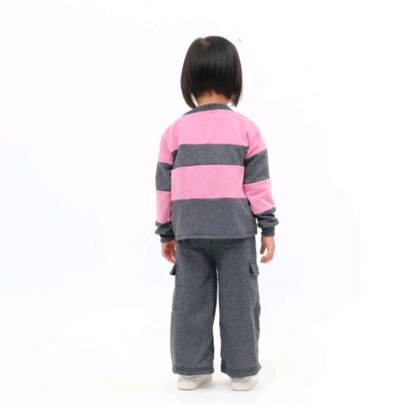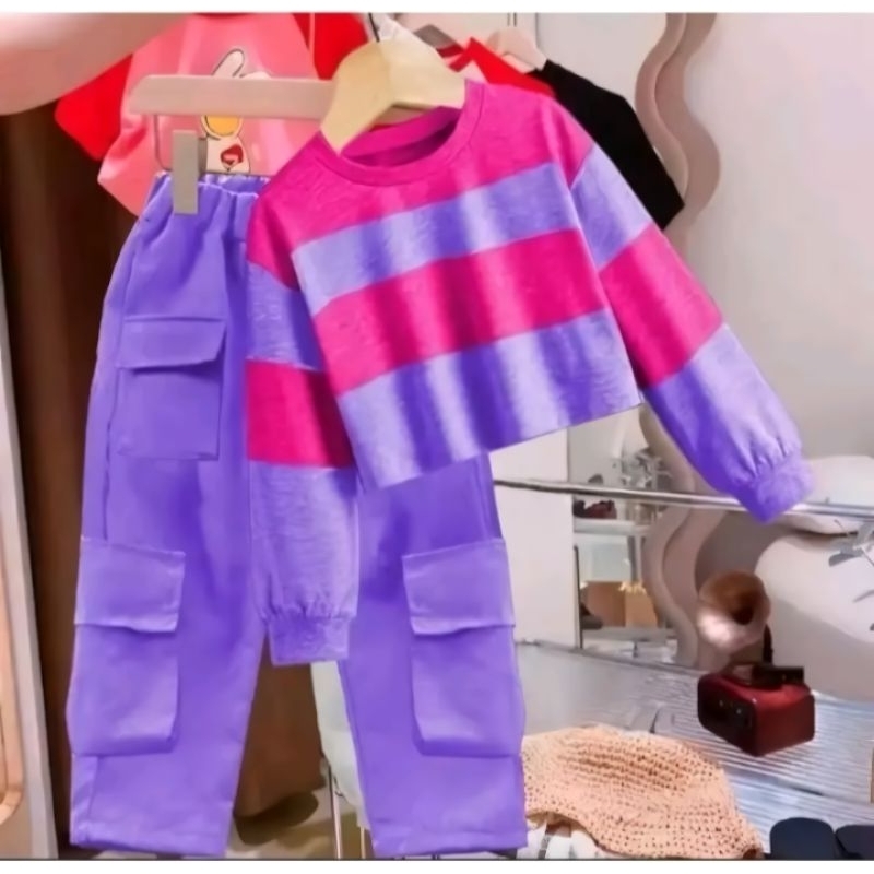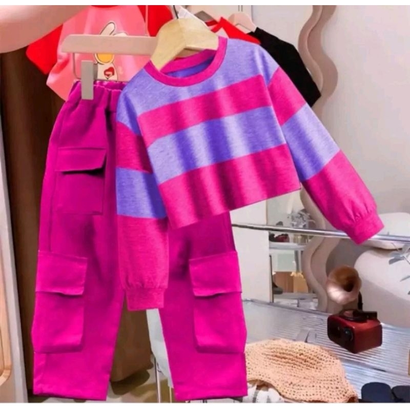 One Set Cargo Striped Multicolor Stripe Premium Sweater for Girls 1-12 Years Old Children's Suit