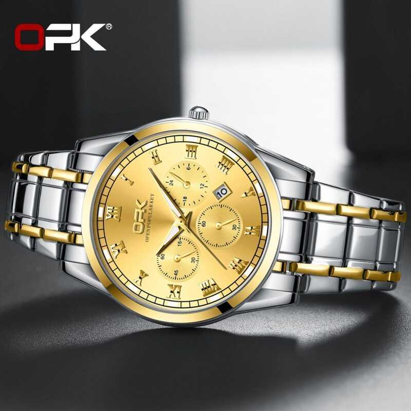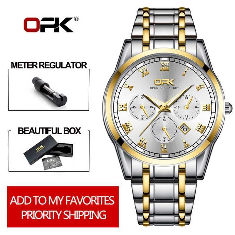 OPK Watch For Men Water Proof Relo for Man Original Business Genuine Quartz Stainless Steel Accurate Wear-Resistant Luminous Calendar Charm Watches