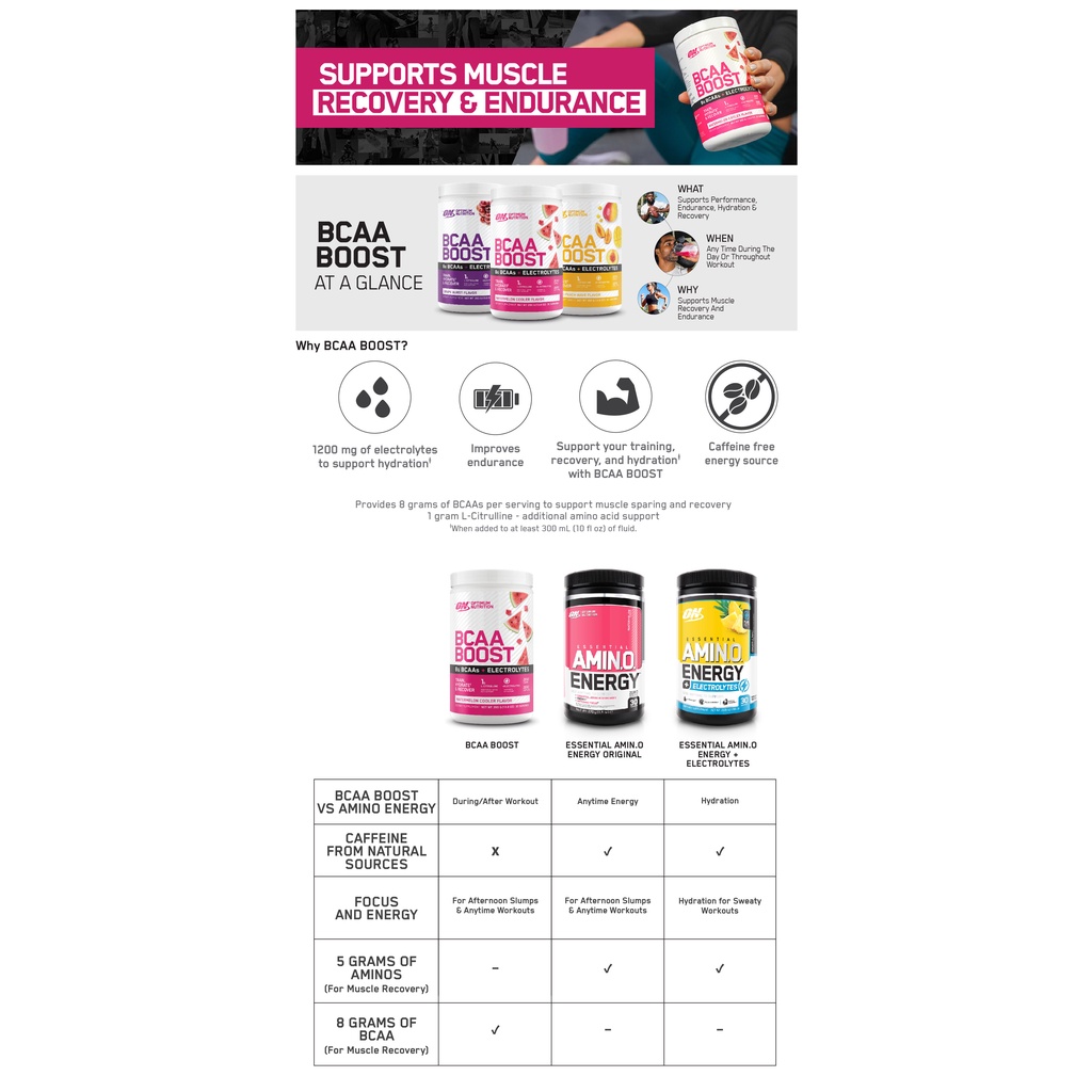 Optimum Nutrition BCAA Boost, 30 Servings - Post Workout, Amino Acid, BCAAs, Instant Muscle Recovery