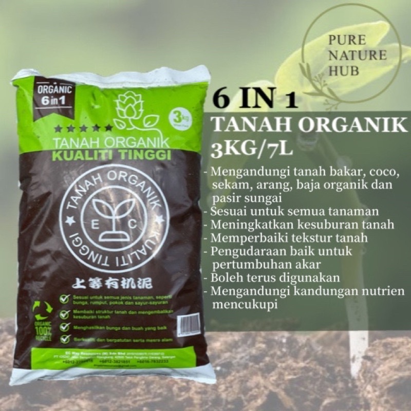 [ORI] TANAH 6 IN 1 ORGANIC SOIL 3KG PREMIUM TANAH HITAM ORGANIK TANAMAN POKOK BUNGA SAYUR KEBUN GARDENING VEGETABLE 有机泥土