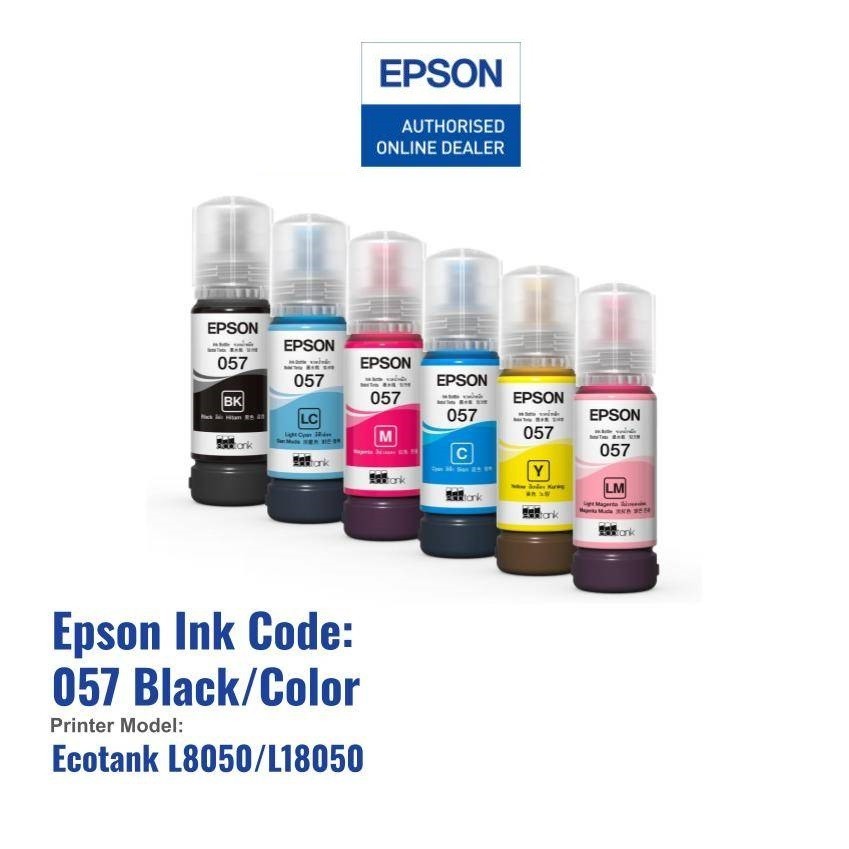 ORIGINAL Epson 057 Ink Bottle for EPSON L8050, L18050 Printer (Black Cyan Magenta Yellow LC LM)
