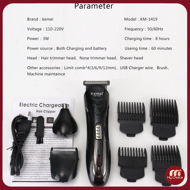 ORIGINAL KM-1419 KEMEI Men Rechargeable 3 in 1 Hair Trimmer Clipper Razor Nose Beard Shaver Machine Gunting Rambut 科美理发器