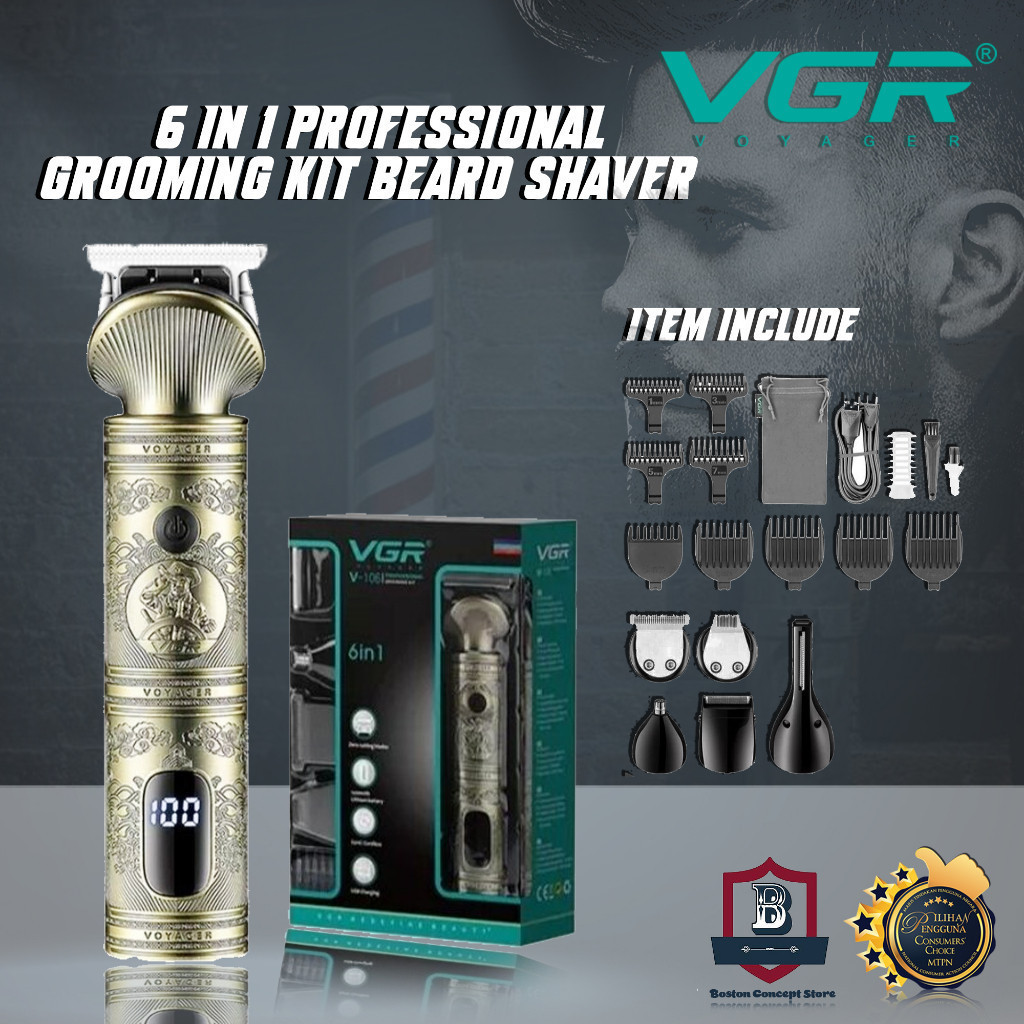 ORIGINAL VGR V-106 Professional Hair Clipper Hair Cut Mechine Nose Trim 6in1 USB Charging V106 V109 Shavor Razor 6 In 1