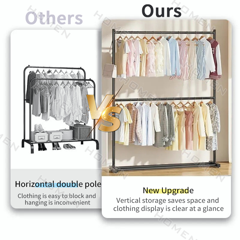 Ou 200CM Double Pole Clothes Hanging Rack Strong Steel Laundry Rack Cloth Hanger Rack Rak Ampaian Penyidai Baju 晾衣架