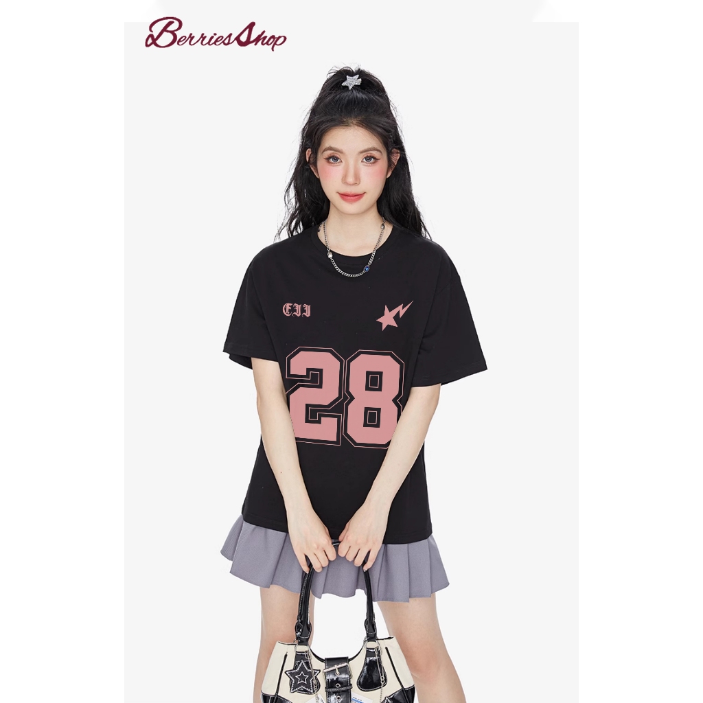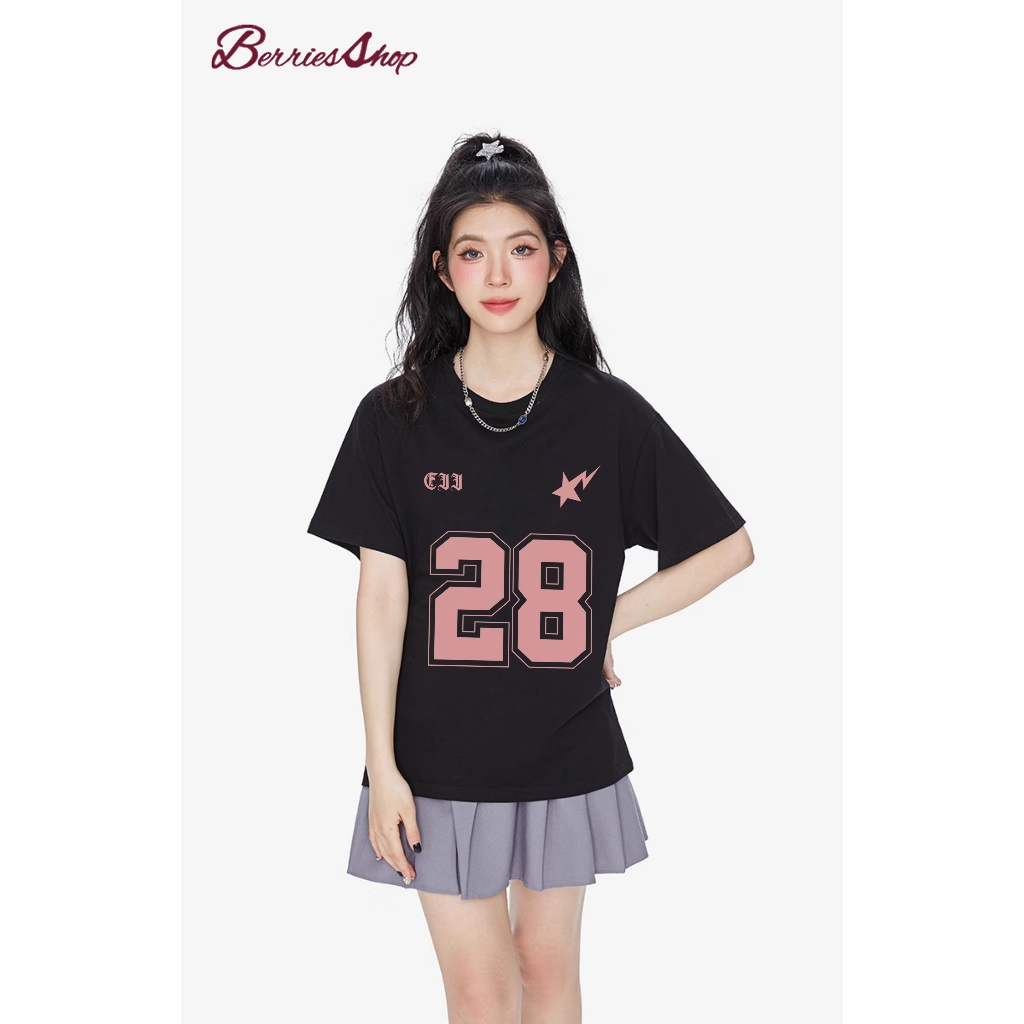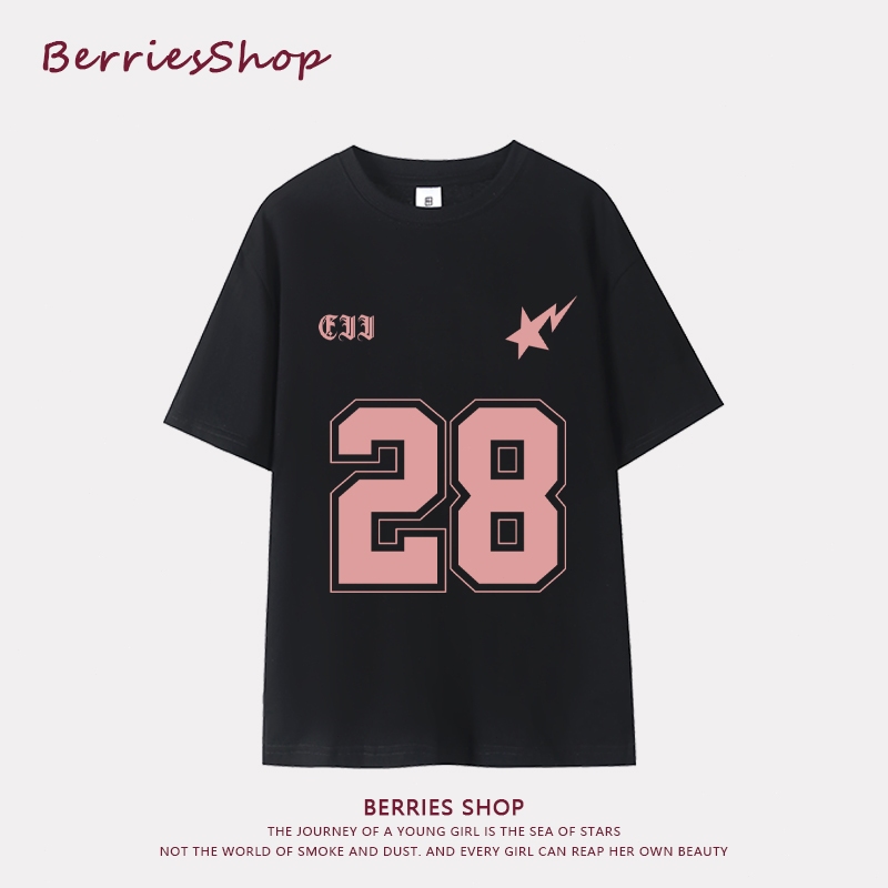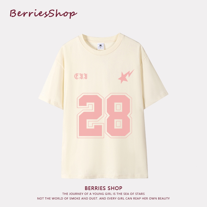 Oversize casual round neck top with 28 printed women's loose short sleeved 100% pure cotton T-shirt