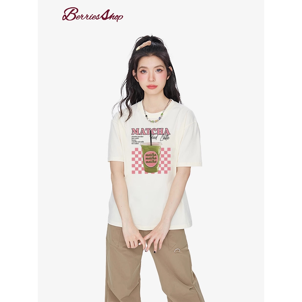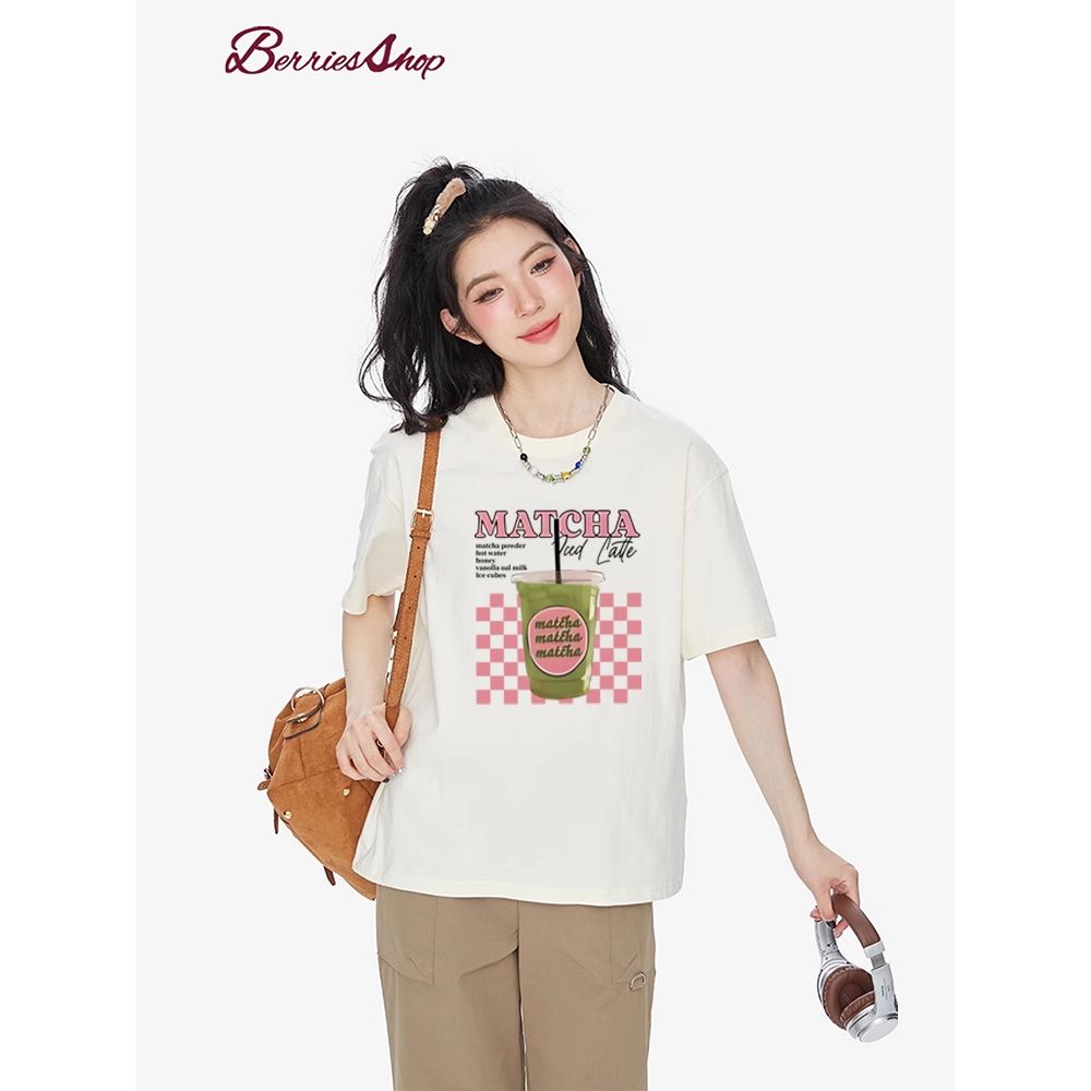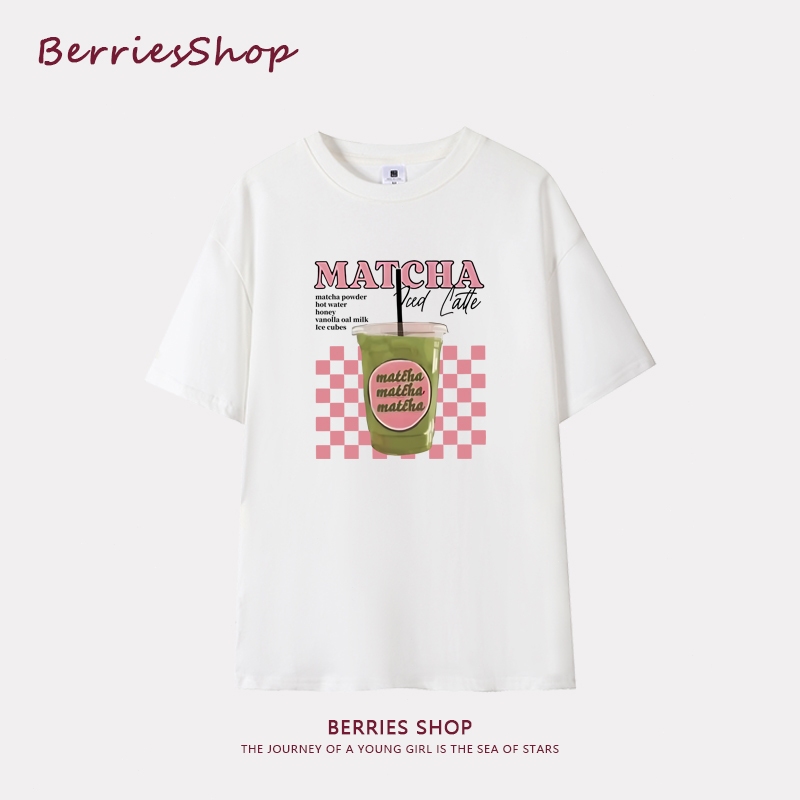Oversized women's summer beverage vegetarian printed casual loose short sleeved Korean T-shirt