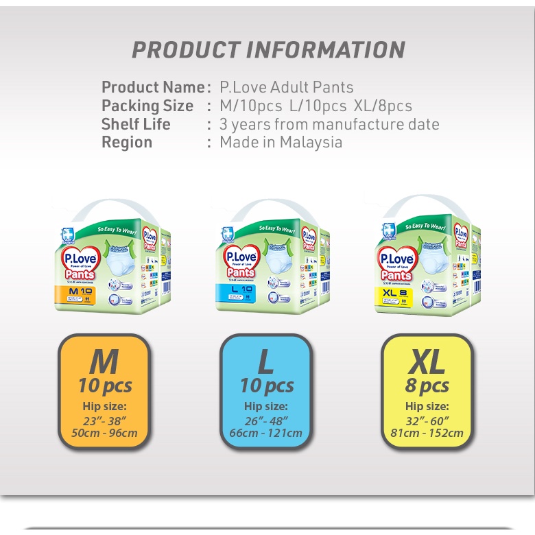 P.Love Adult Diapers Pants - L10 / M10 / XL8 (1 Pack)