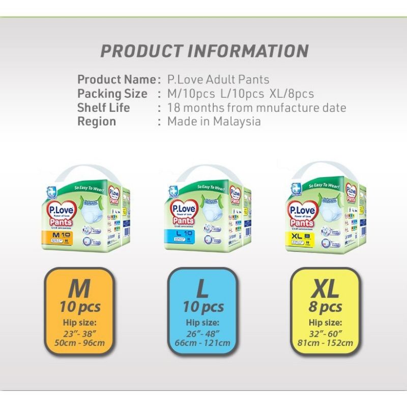 P.Love Adult Pants - M10 / L10 / XL8 (12 Packs)