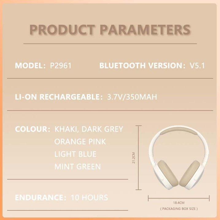 P2961 Headset Bluetooth Headphones Over Ear Wireless Noise Cancelling Earphone HiFi Stereo Foldable Light Weight