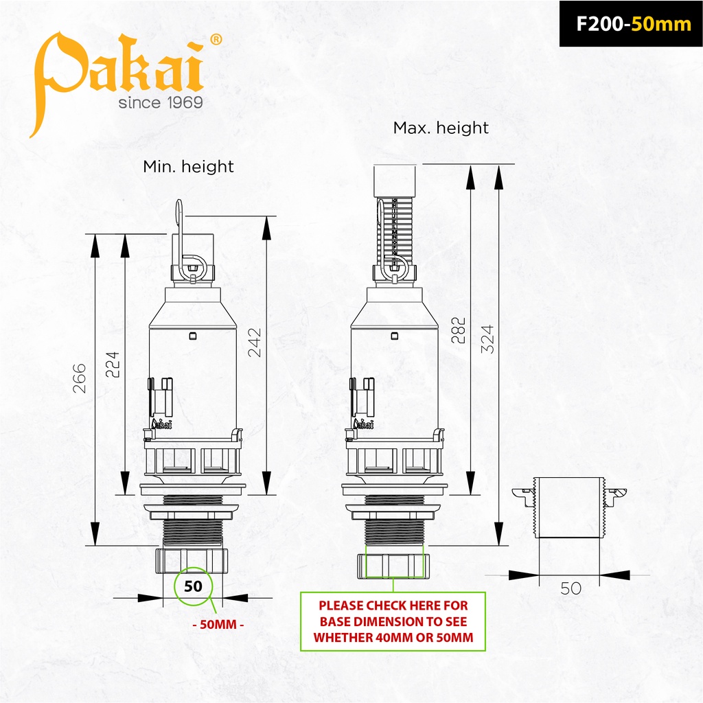 Pakai Inspire Single Flush Lever Handle Outlet Valve (F200) - 40MM / 50MM Base