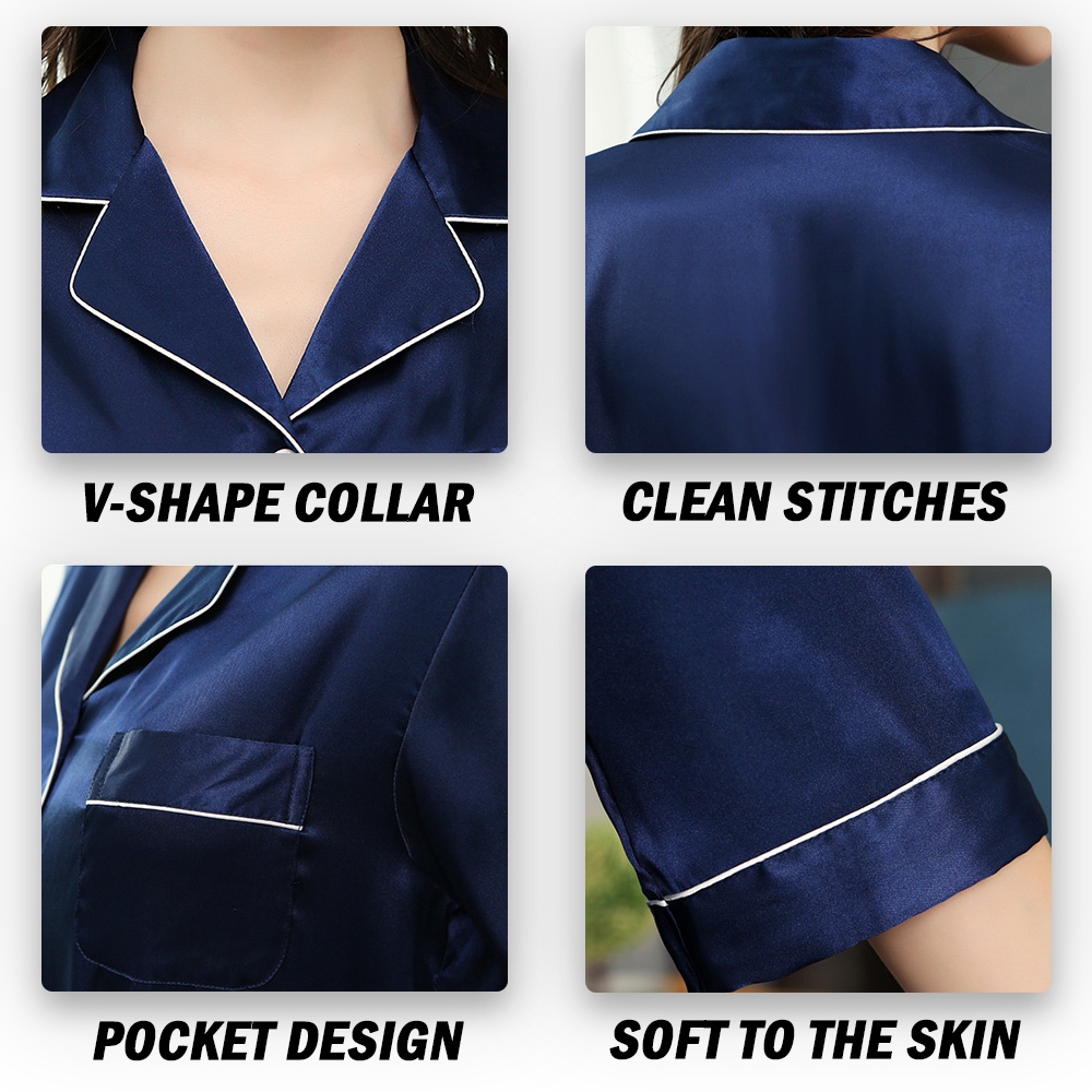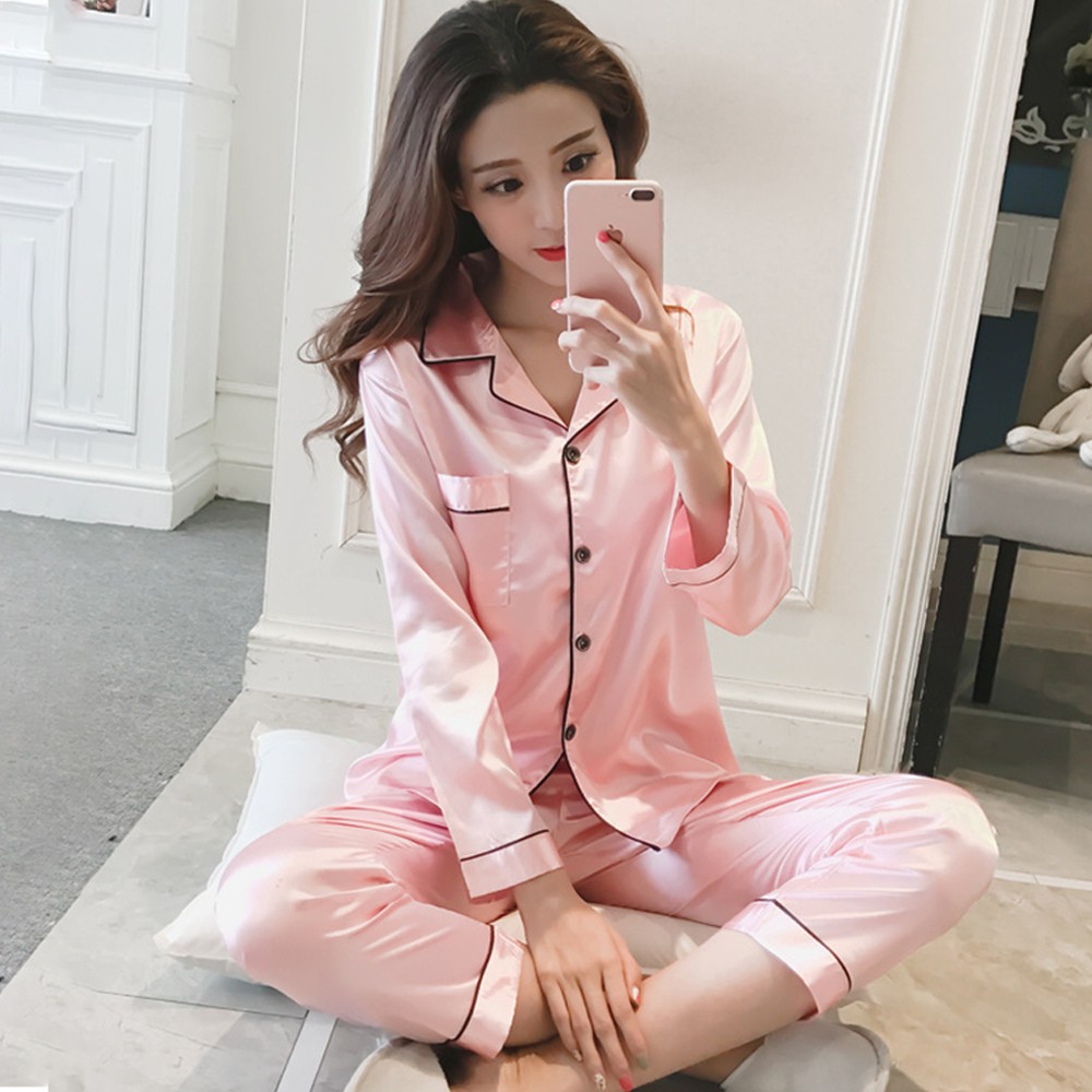 PANDORA Silk Satin Pajamas Set Unisex Long Sleeve Women Sleepwear Nightwear Baju Tidur wanita perempuan Licin