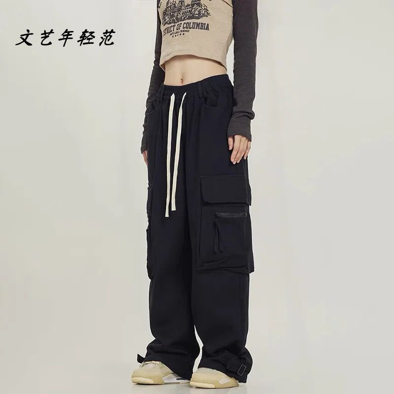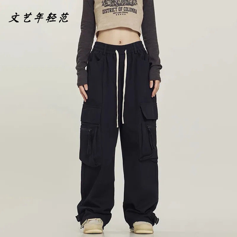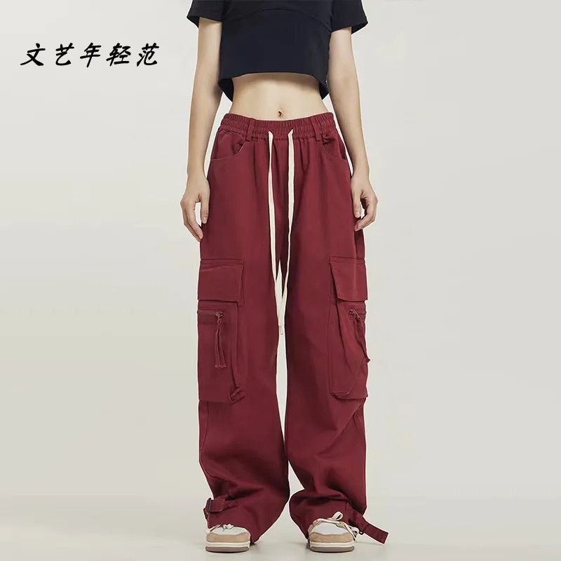长裤 Pants 春秋款美式宽松阔腿红色工装裤男女潮牌休闲街舞裤拖地直筒运动裤23.04.12现货
