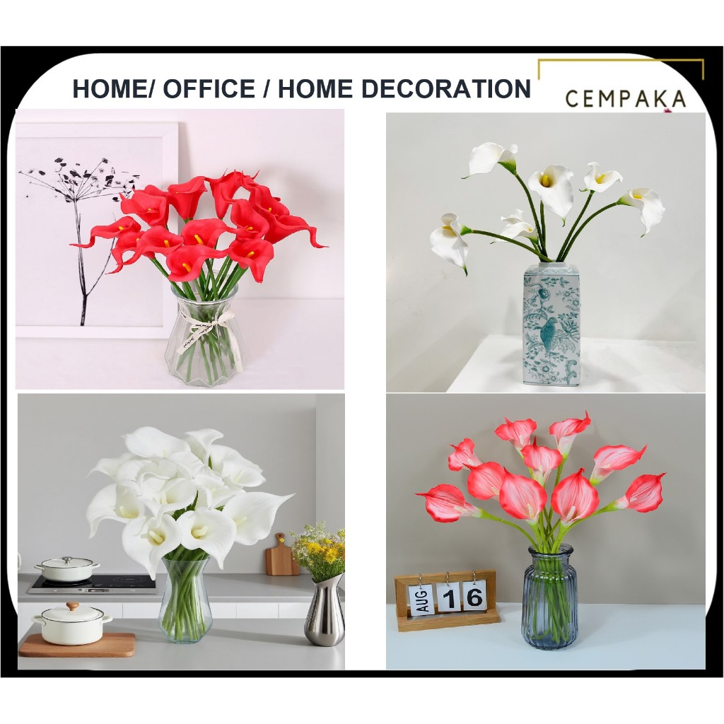 Parlait Double Head Eva Calla Lily Artificial Flower Wedding Home Office Decoration | Bunga Hiasan Tangan Mewah Murah