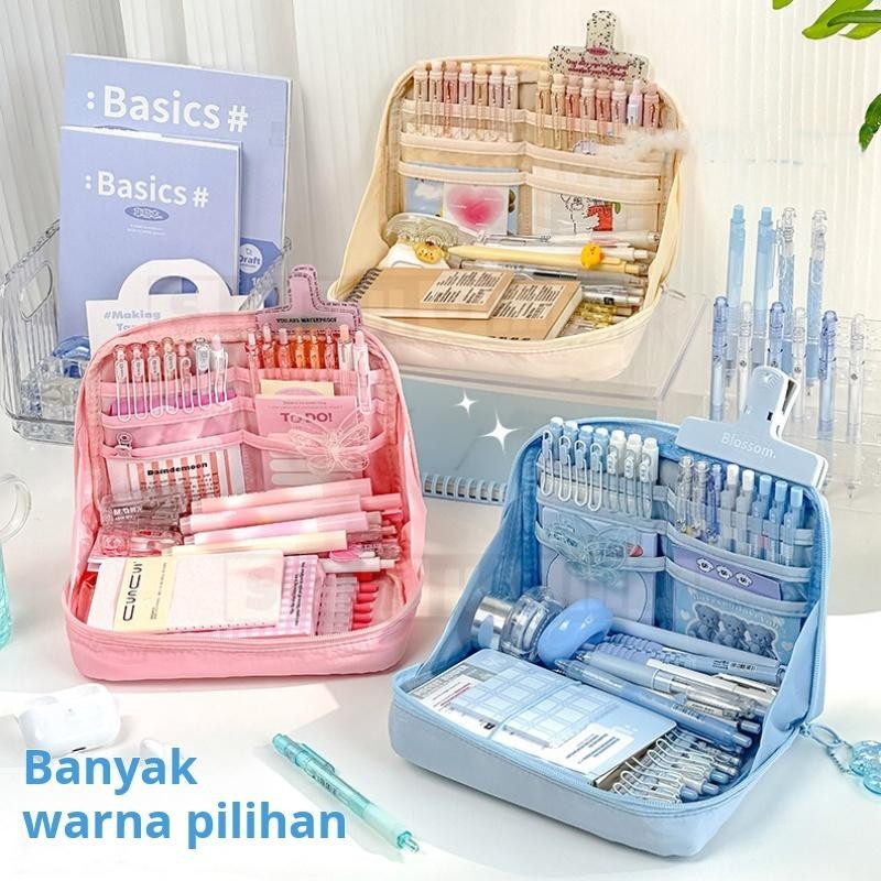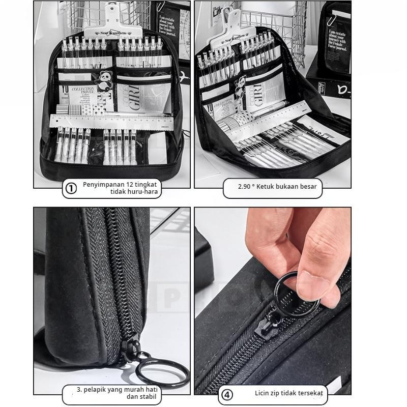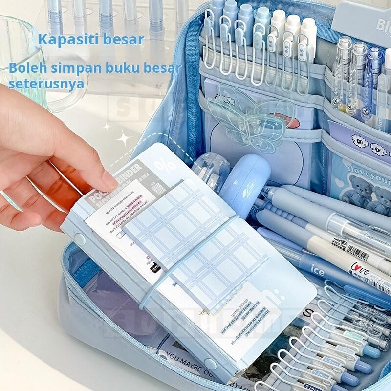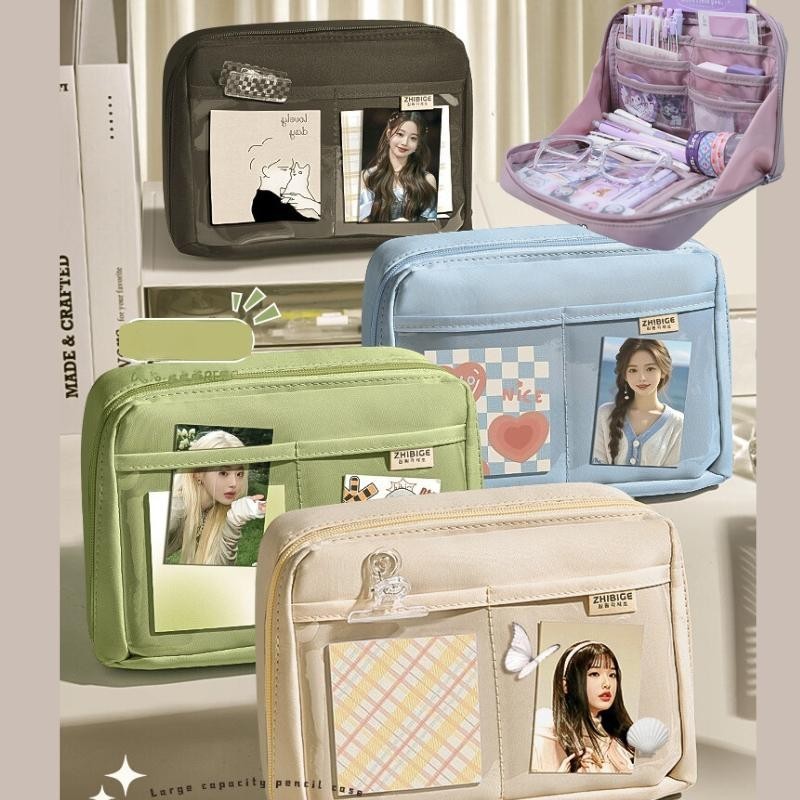 Pencil Case Large Capacity Aesthetic Standable Student pencil box ins style Pen Case kotak pensel capcity 90°opening