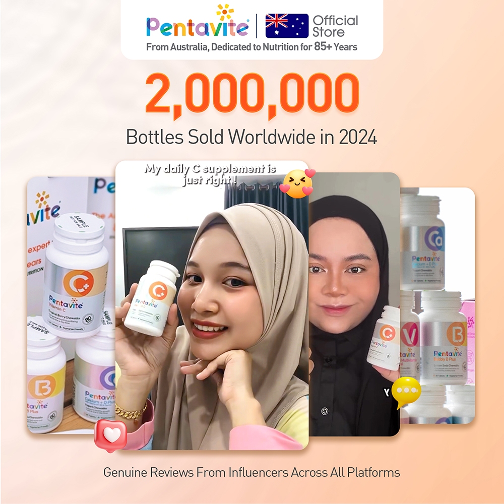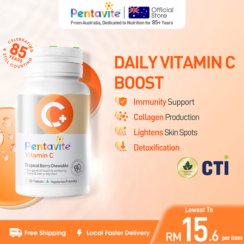 Pentavite Vitamin C Orange Chewable (30 Tablets for Adult) Vitamin c Complex supplements well bein Essential Nutrient 维生素C vit c vital color vitamin C可咀嚼热带浆果风味