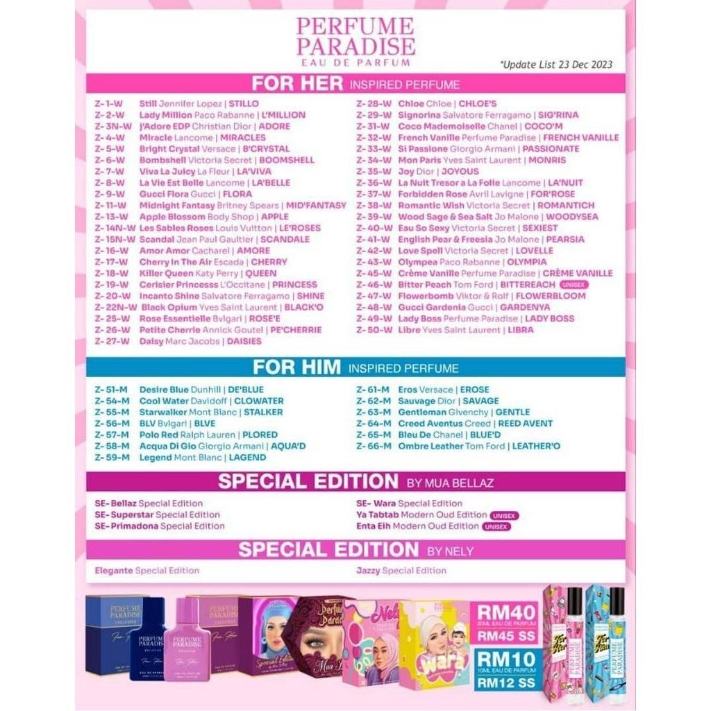 PERFUME PARADISE HQ SPECIAL EDITION FOR HER FOR HIM 10ML ORIGINAL HQ