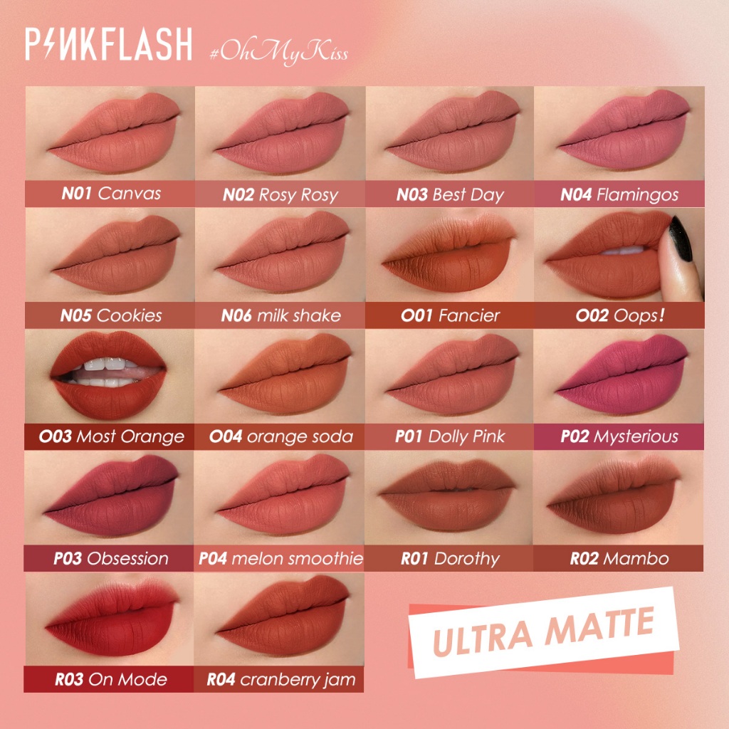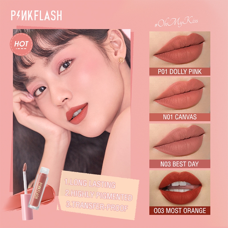 PINKFLASH 3PCS Lip Set OhMyKiss Matte Liquid Lipstick Soft VE Moisturizing Long Lasting Cosmetics Cruelty-Free