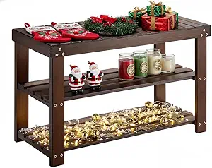 Pipishell Bamboo Shoe Rack Bench, 3 Tier Sturdy Shoe Bench, Storage Shoe Organizer, Holds up to 300lbs for Entryway Bedroom Living Room Balcony, Brown