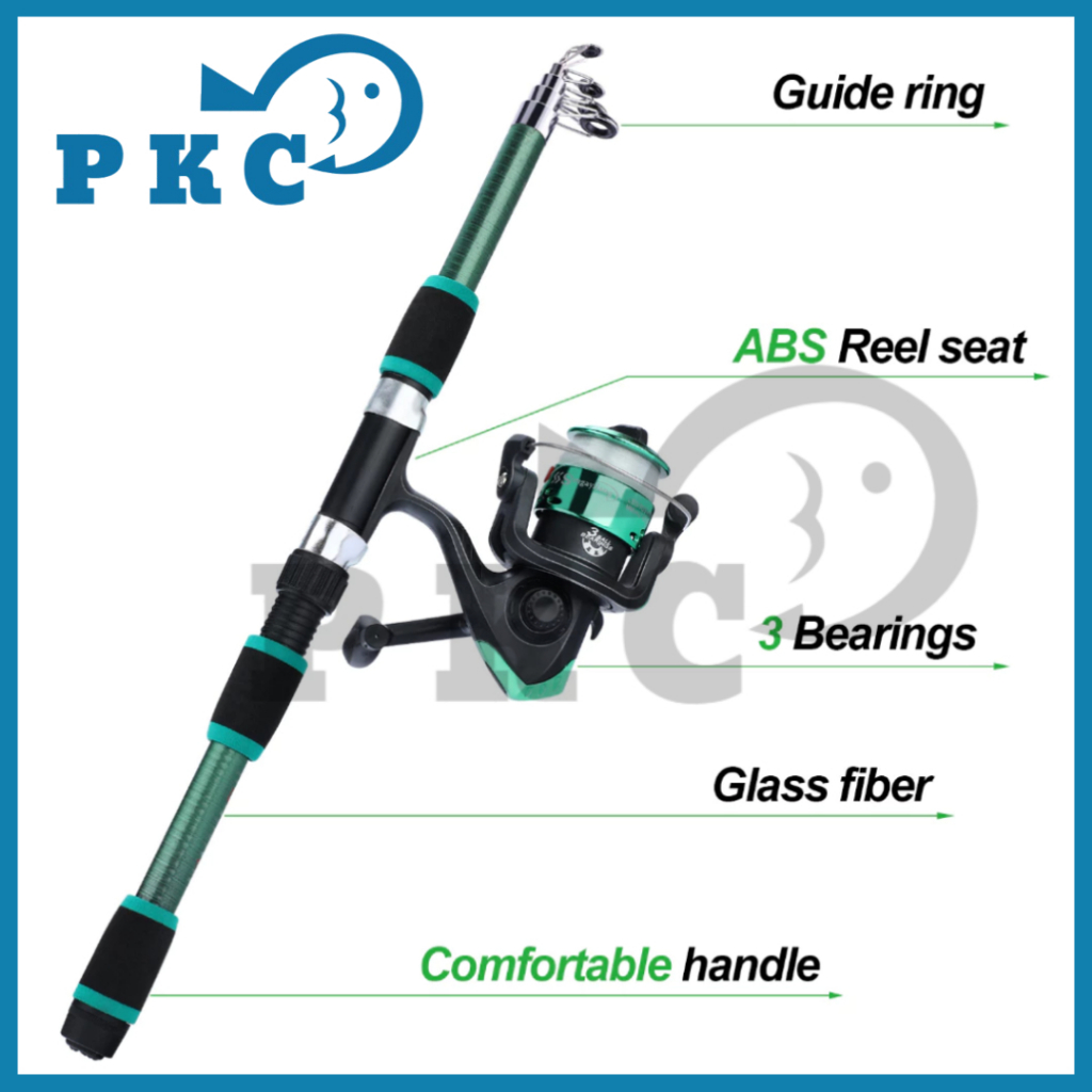 PKC Joran Pancing Set 1.8M Memancing Spinning Fishing Rod Reel Telescopic Portable 5.2:1 Gear Ratio