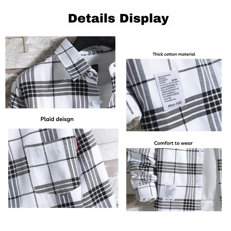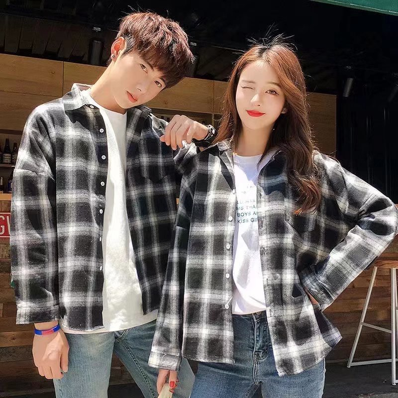 Plaid shirt men long sleeve coat jacket Tops Baju Lelaki kotak-kotak Kemeja Baju Lengan Panjang Korean Couple 韩风长袖格子衬衫男