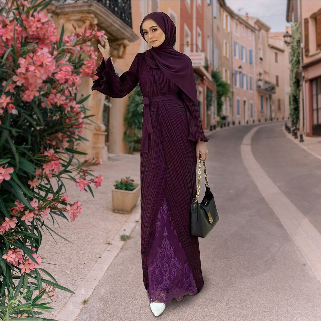 Pleated jubah abaya Long Dress Abaya Plain Premium Abaya Dubai jubah muslimah Ironless long dress wedding dress lace