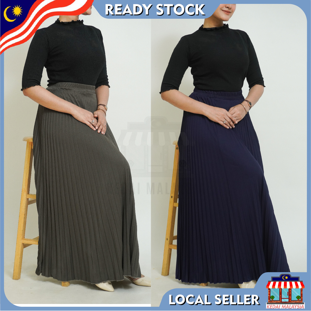 Pleated Skirt Italian Crepe Full Length/ Muslimah Skirt Pleated Princess Flowy/ Skirt Labuh/ Skirt Panjang #LW 2081