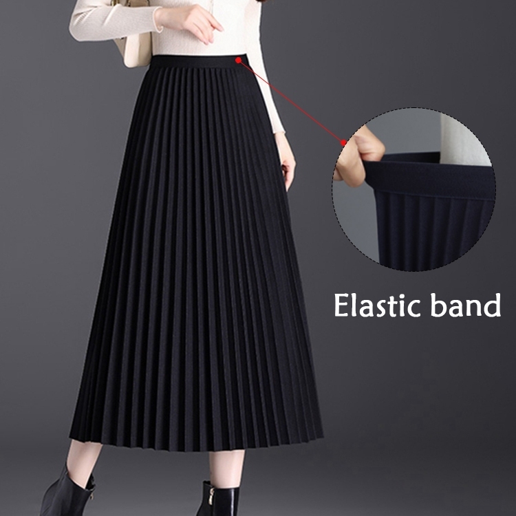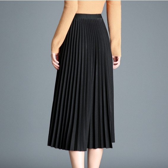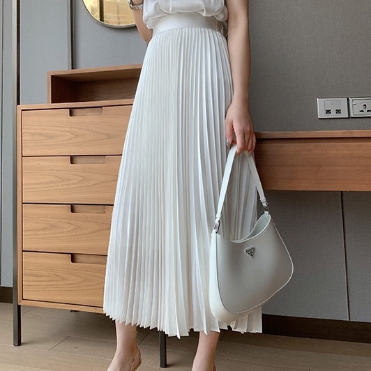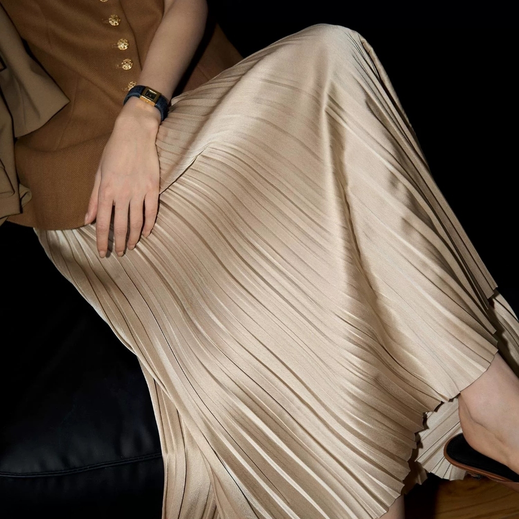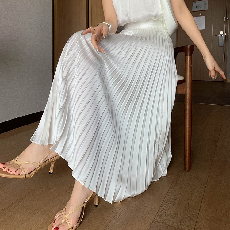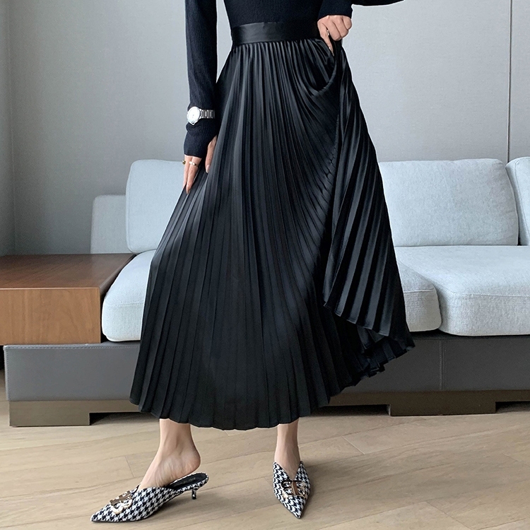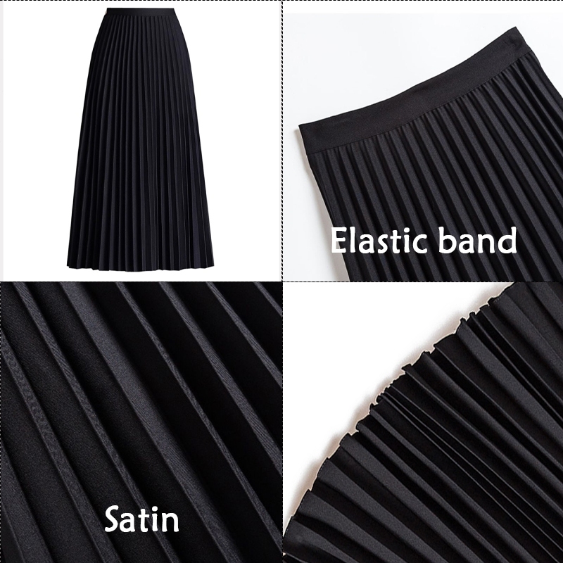 Pleated Skirt Plain High Waist Satin Skirt A-Line for Women Elegant Long Skirt!Malaysia Stock!