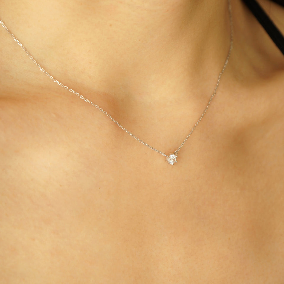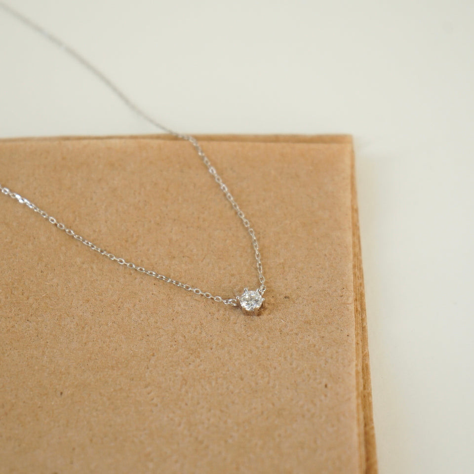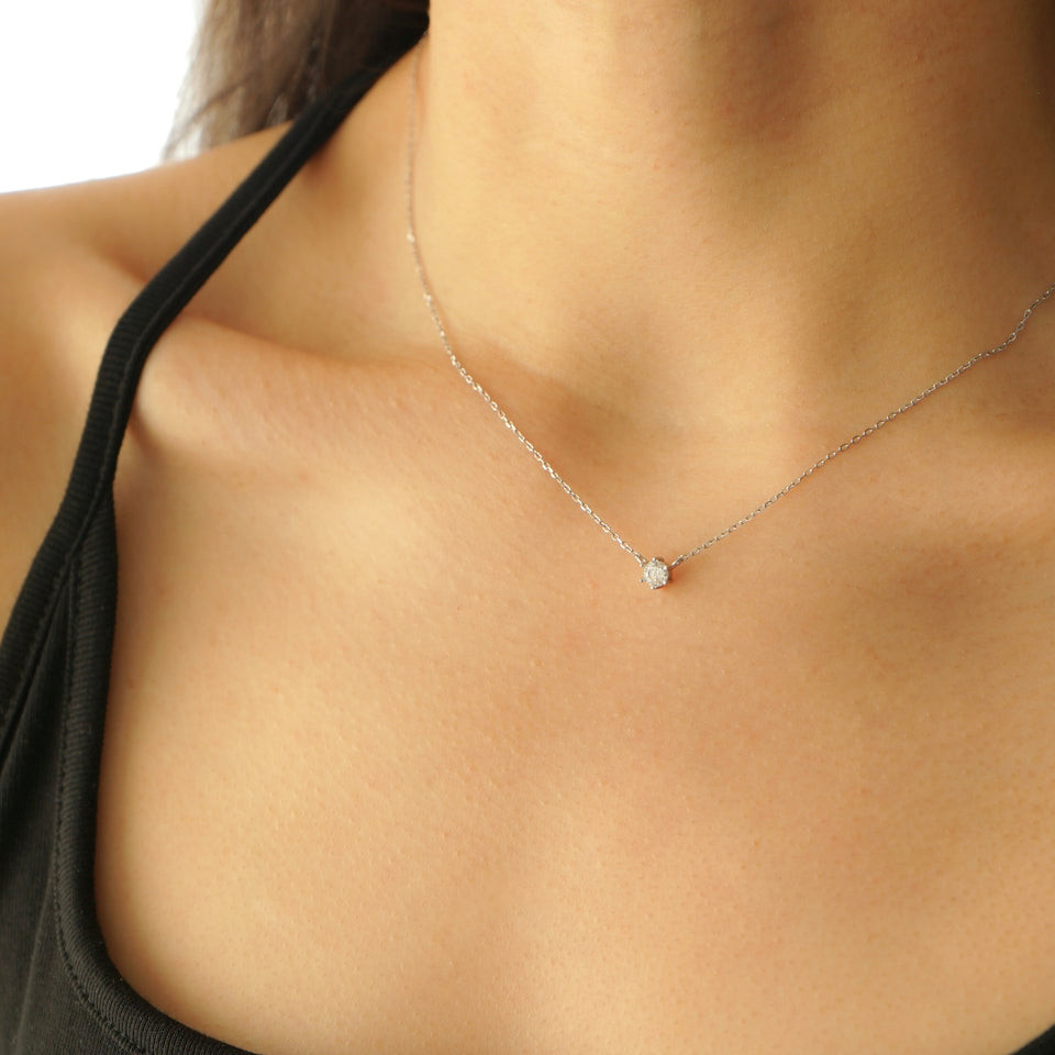 Plenty Iyanna Solitaire Necklace Rhodium Plated 925 Sterling Silver - Silver