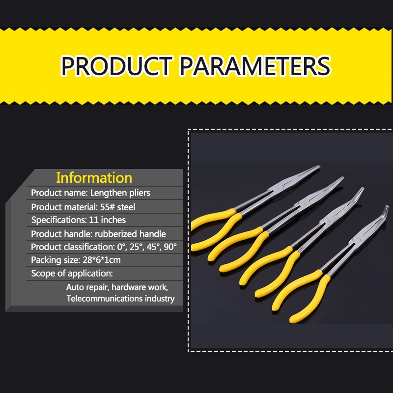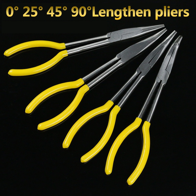 Plier 11" Inch 280mm Extra Long Nose Plier Straight 90/45 degree Needle Nose Plier Bent Tip Playar Muncung Tirus 钳子