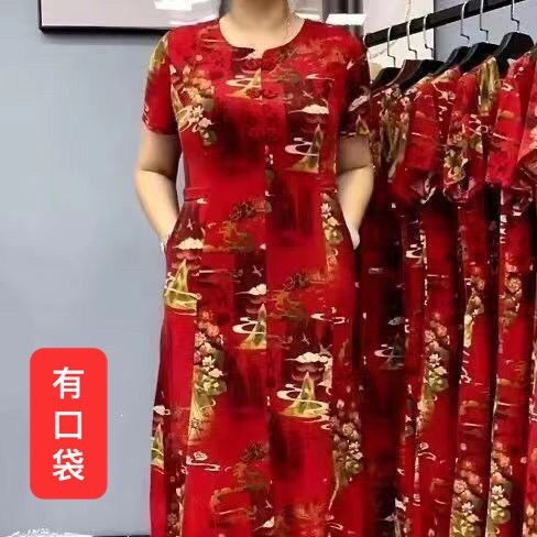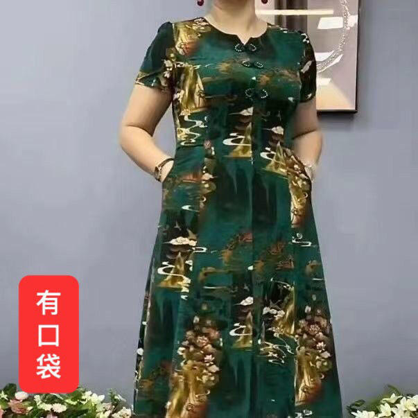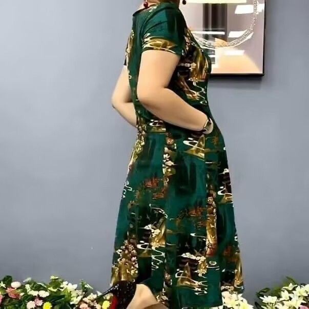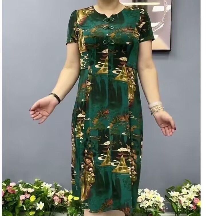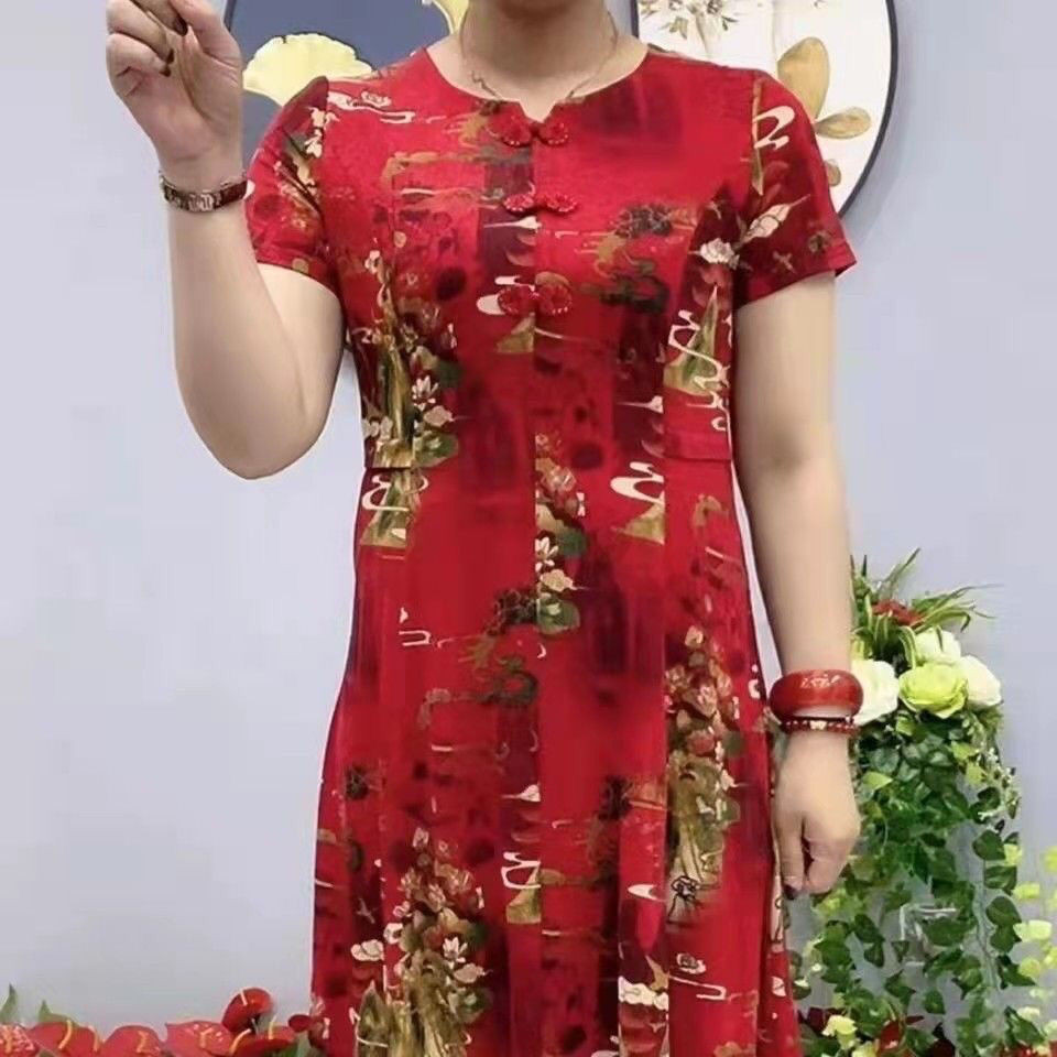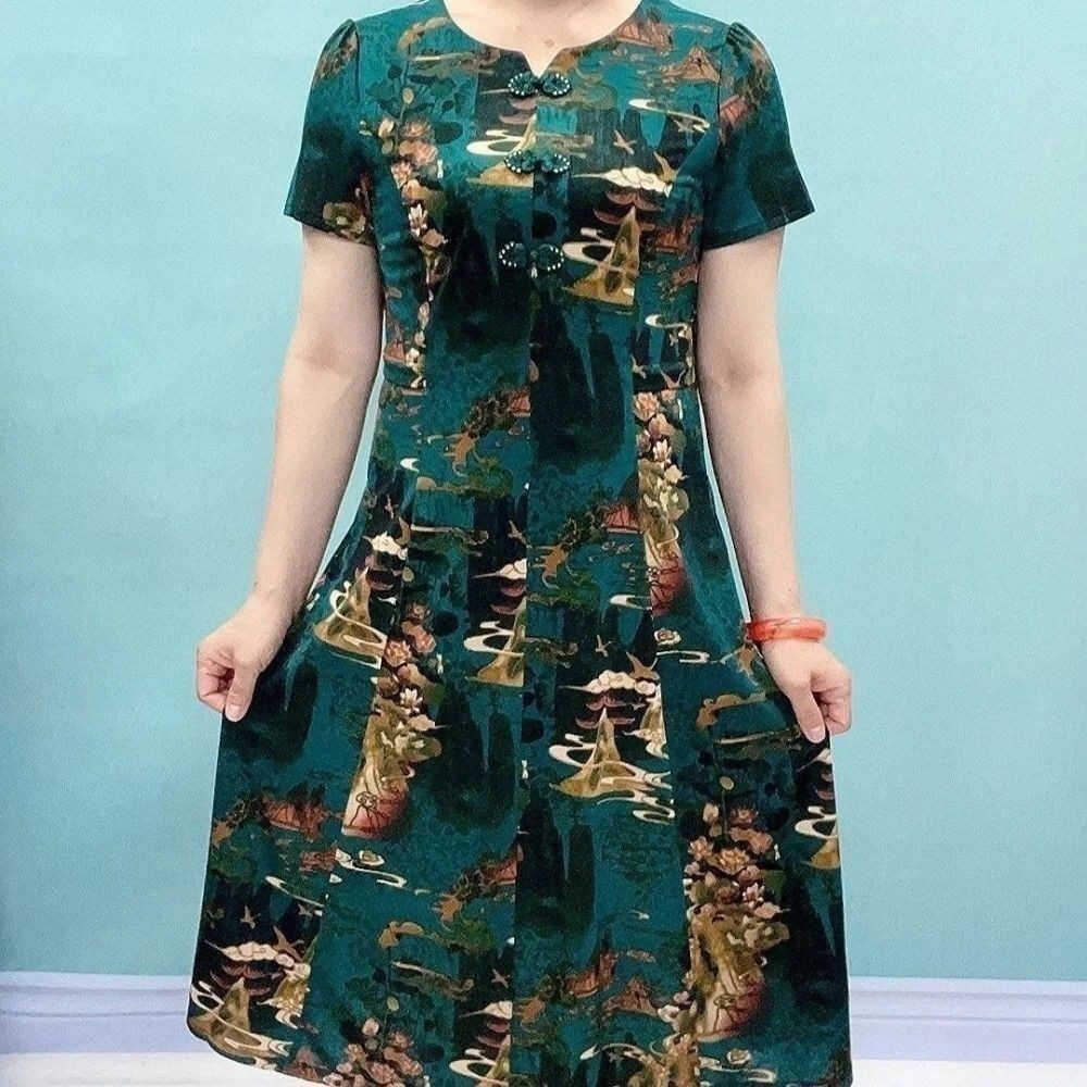 Plus Size 5XL Vintage Dress Women Short Sleeve Print Hight Waist Dress Fashion Knee-length Loose Dress for Women