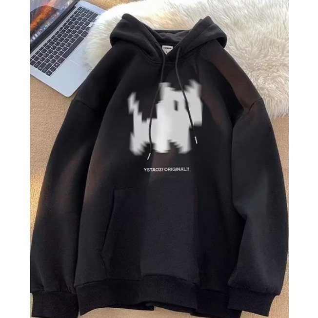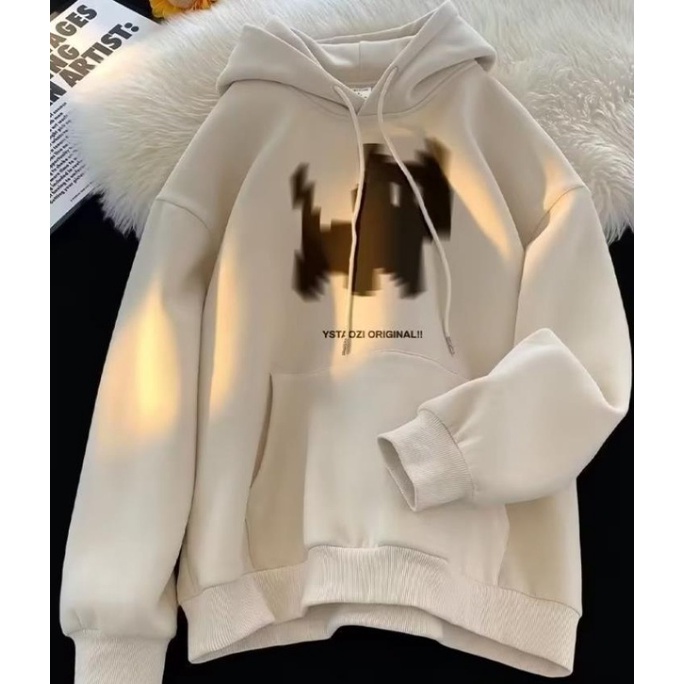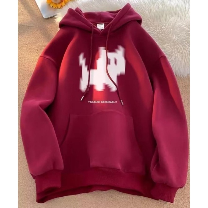 【Plus Size M-8XL】American style Originality Teenage Street Simple and cute cat print Oversized Hoodie Couple Long-sleeve Loose Hoodie Student's Large Soft Velvet Hooded Sweater