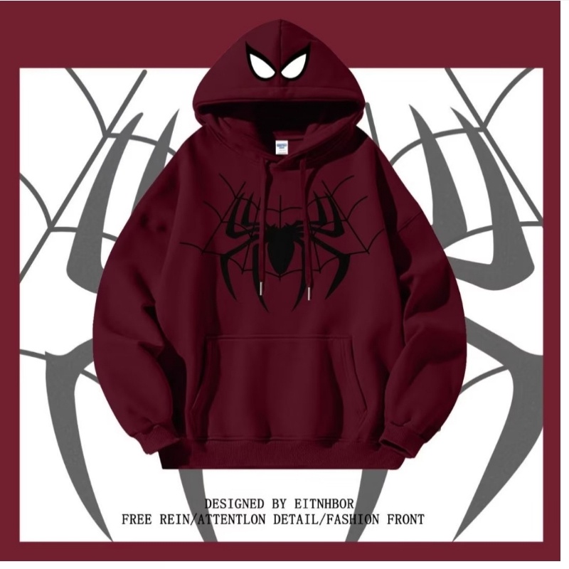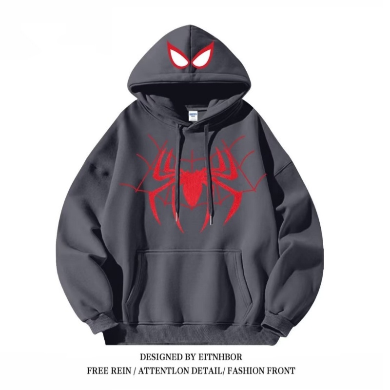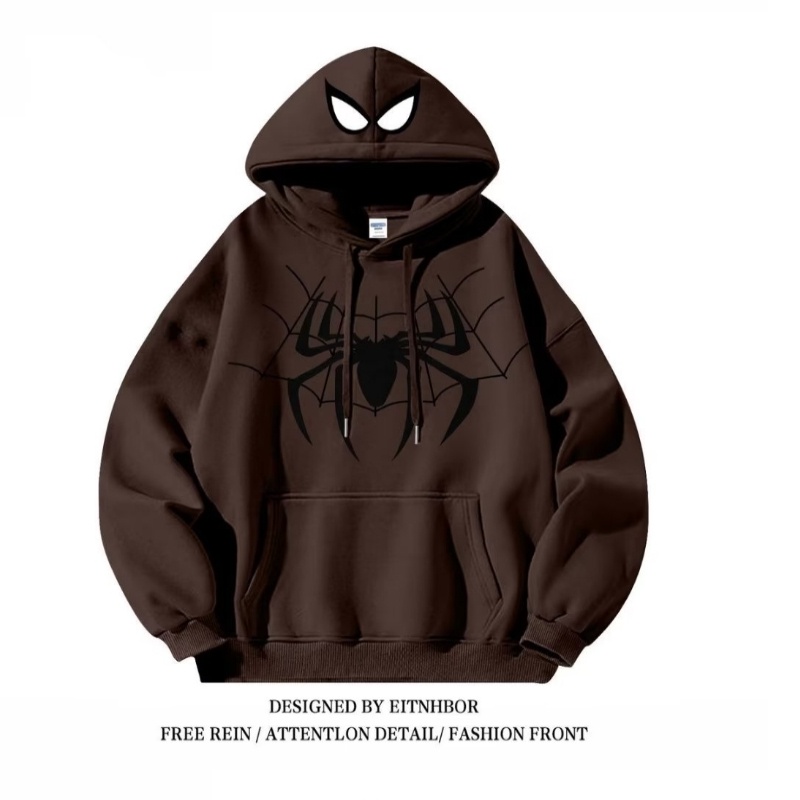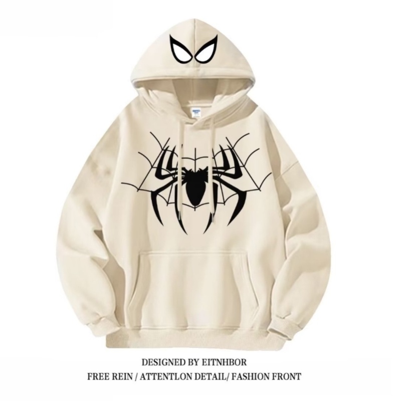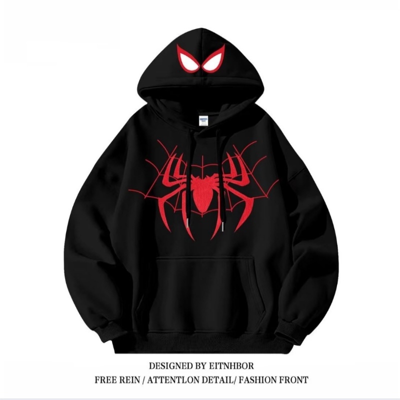 【Plus Size M-8XL Couple Hoodies】2025 New American Fun Cartoon Spider Print Velvet cotton Thick Round Neck Hoodies Men's Fashion Brand Hip Hop Loose Wear Unisex Sweatshirt