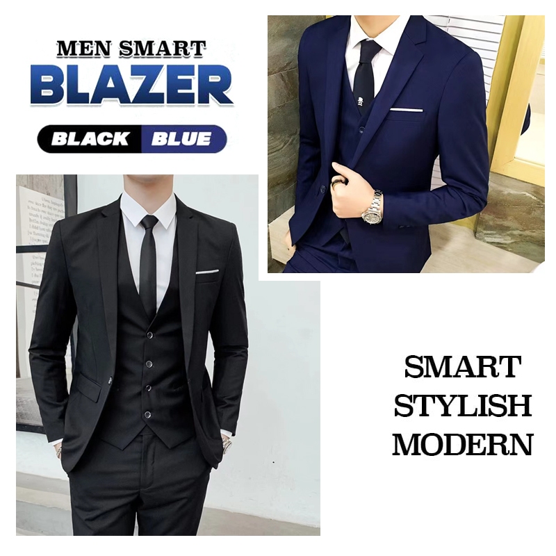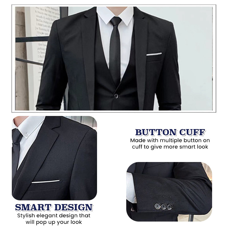 Plus Size Men 3 Piece Suit Set Blazer Lelaki Set Baju Tuxedo Slim Fit Man Formal Business Wedding Korean Office Coat Kot