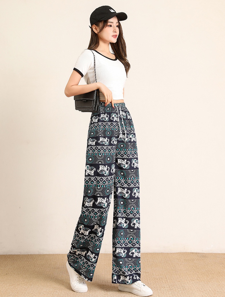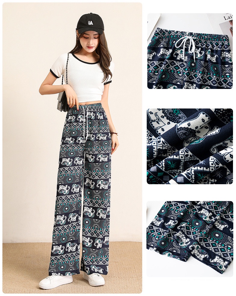PNT46 PandaShop Womens Pants Soft Waist Wide-Leg Appointments Casual Elastic Free/Plus size
