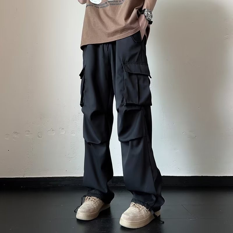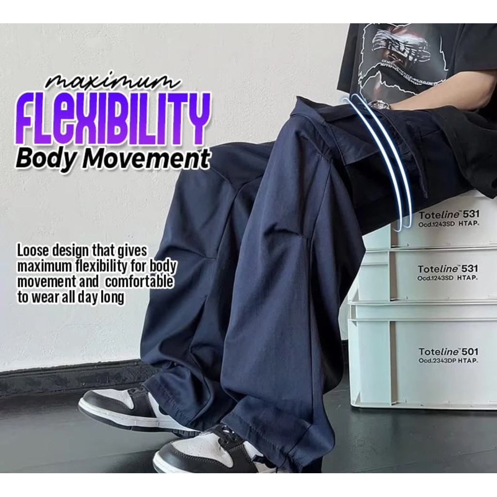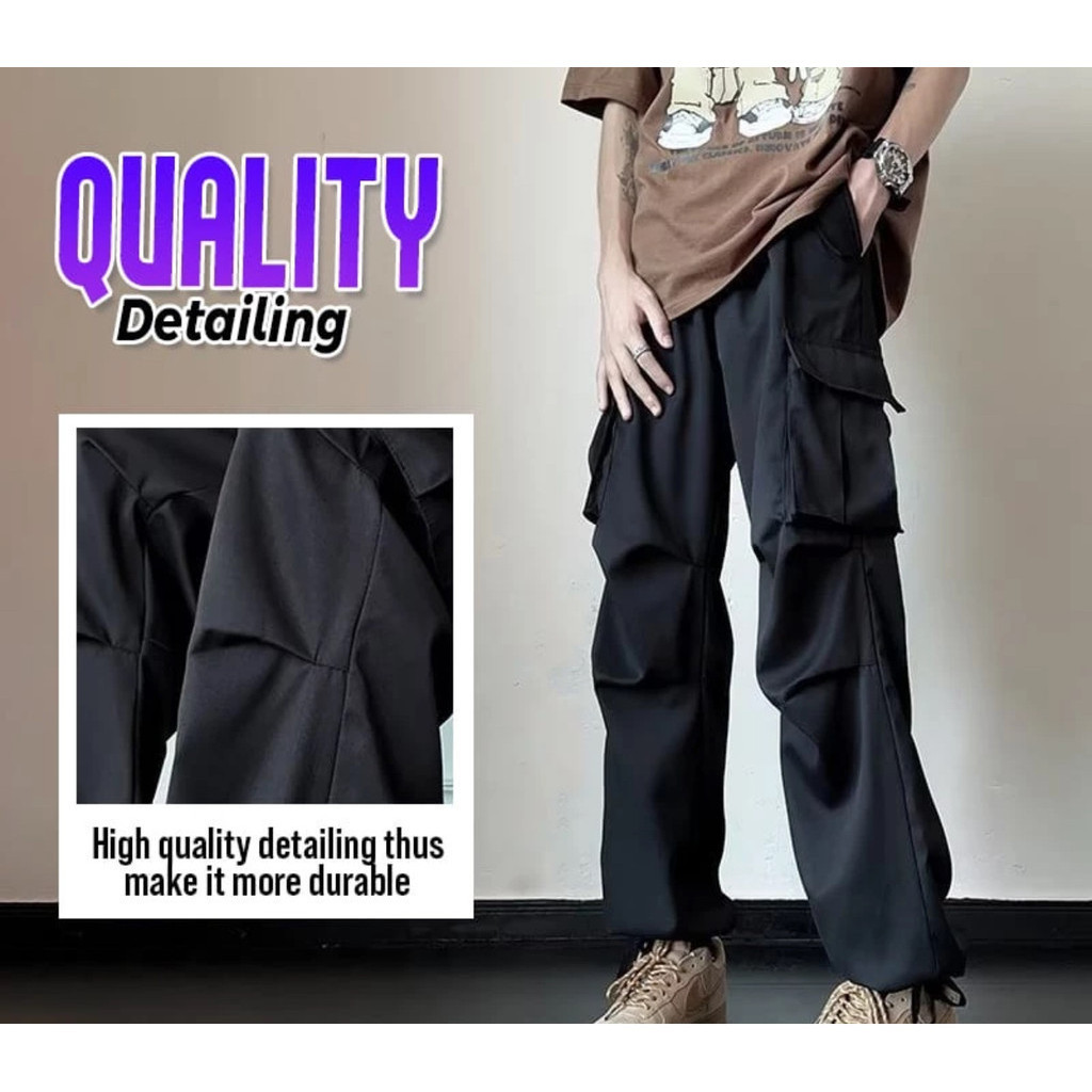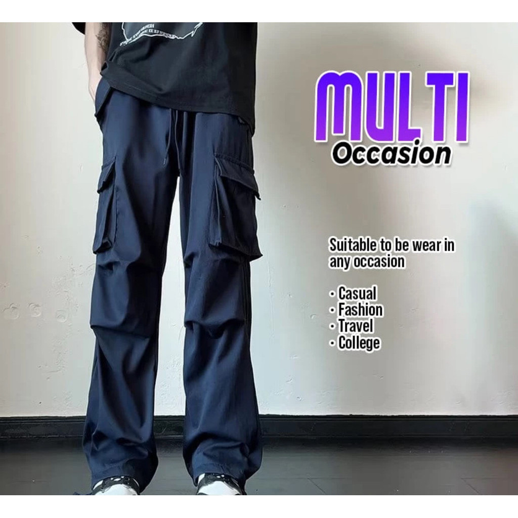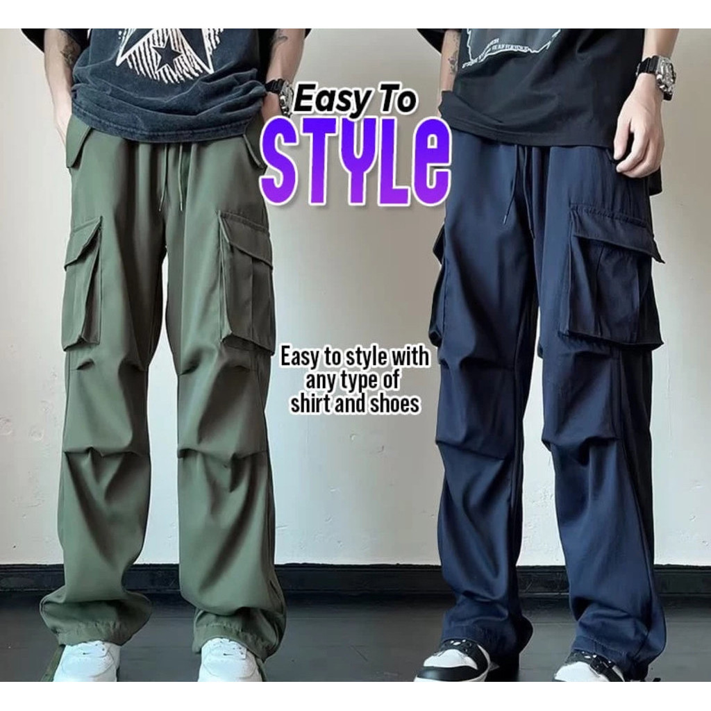 PNT60 PANDASHOP Men Long Loose Fit Straight Cut Pants Man Bottom Trousers Summer Pocket Cargo Pants Seluar Panjang