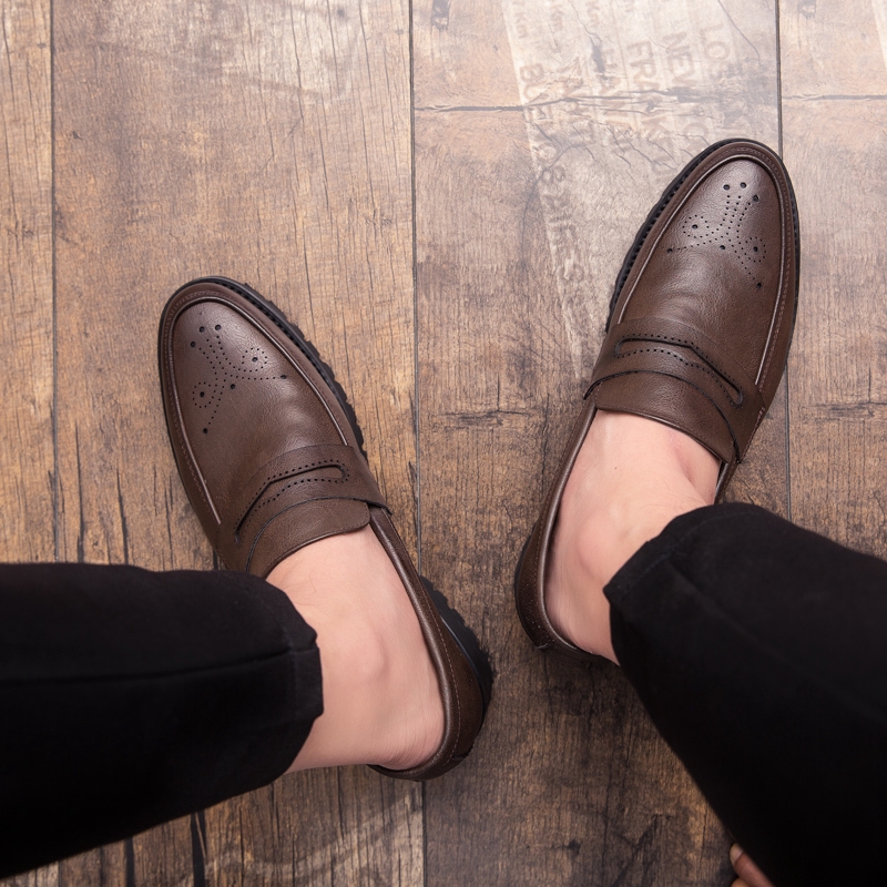 Pointed Toe Men Formal Shoes Big Size Pu Leather Oxfords Slip On Male Wedding Footwear