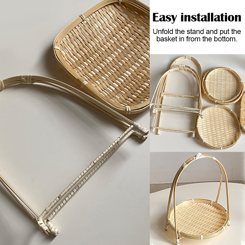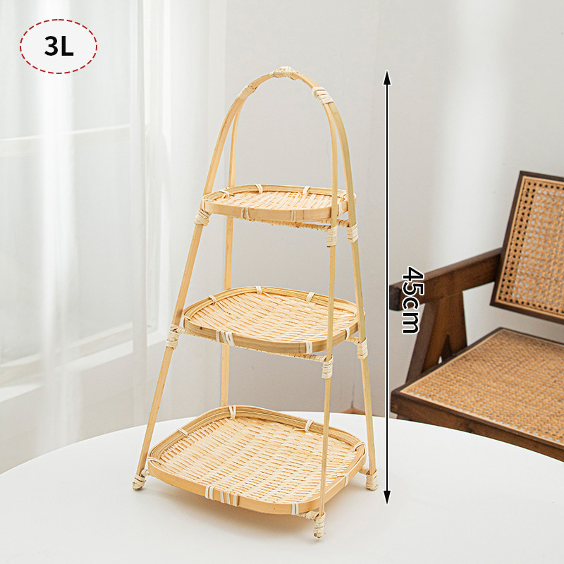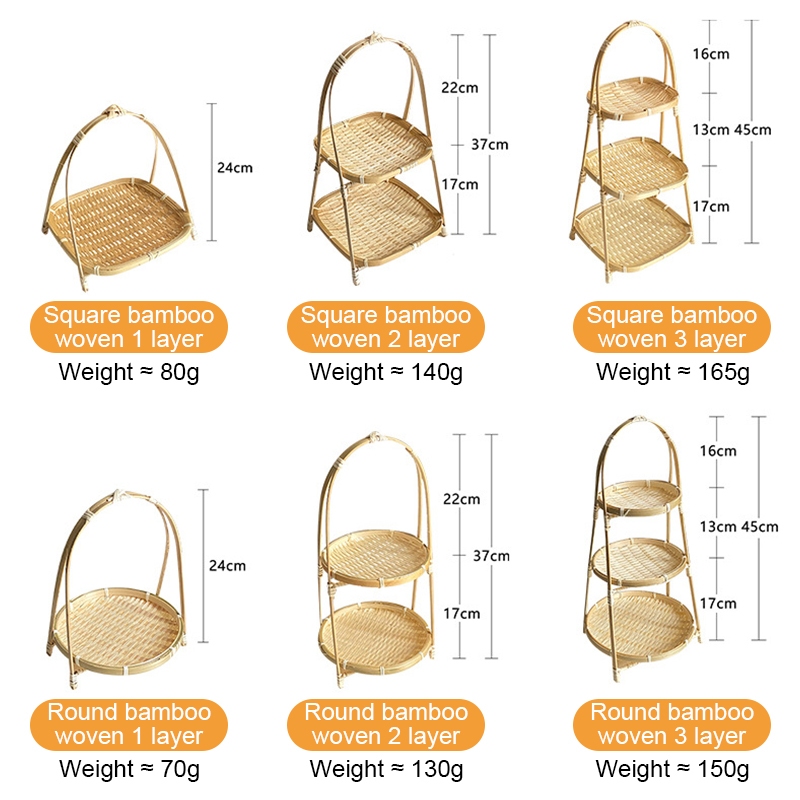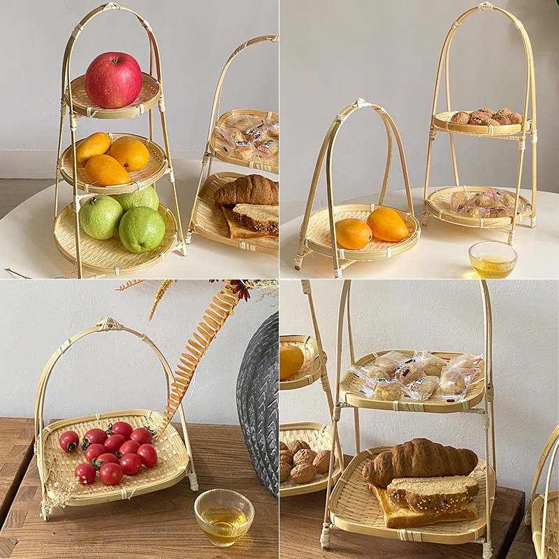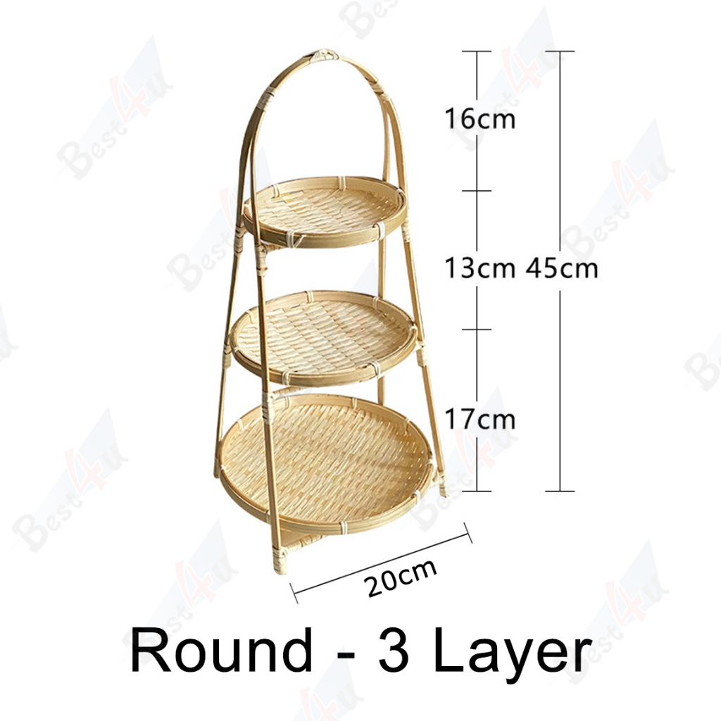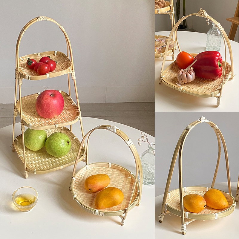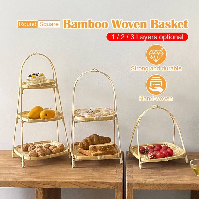 ?Portable Bamboo Basket Bamboo Tray Kitchen 1/2/3 Food Rack Bakul Rotan Murah Layer Handwoven Basket Bakul Bawang 纯手工竹篮