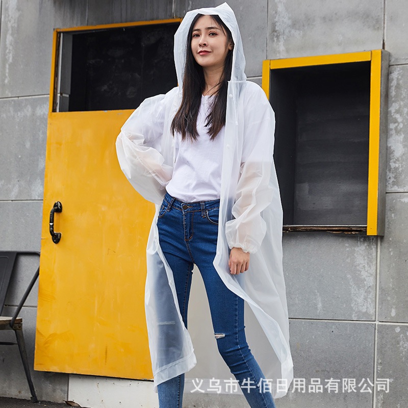 Portable Outdoor Adult Raincoat Jacket EVA Non Disposable Drawstring Waterproof Rainsuit Baju Hujan Poncho
