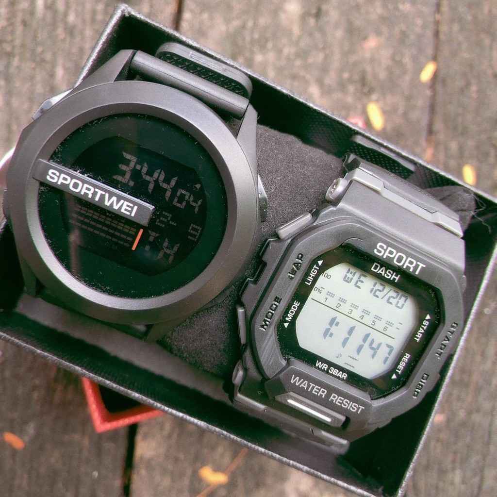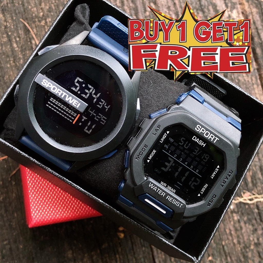 POSHI Watch Men Buy 1 Take 1 Original Waterproof Alarm Digital Chronograph Dual Display Electronic Watch For Men LED Outdoor Swimming Multi-function Sports Watch Jam Tangan Lelaki