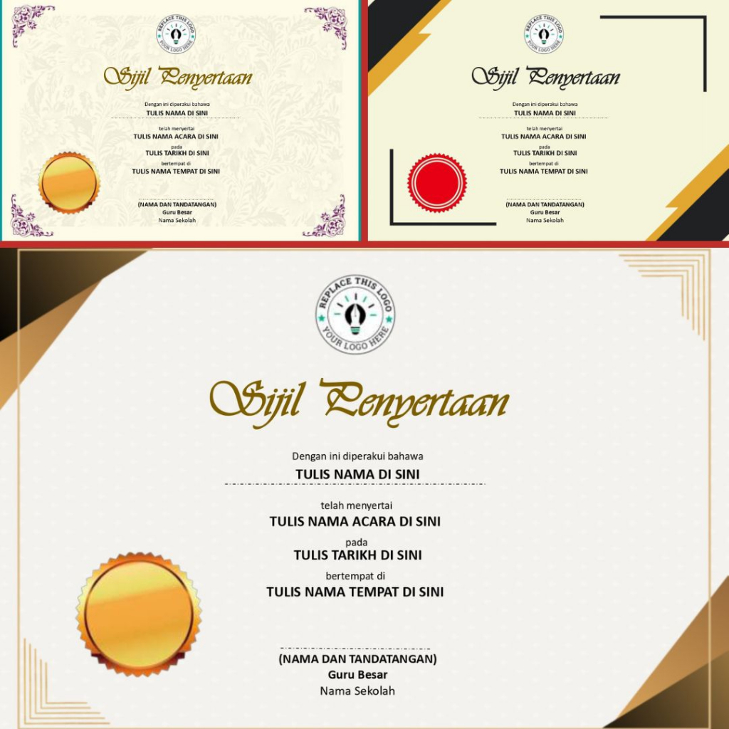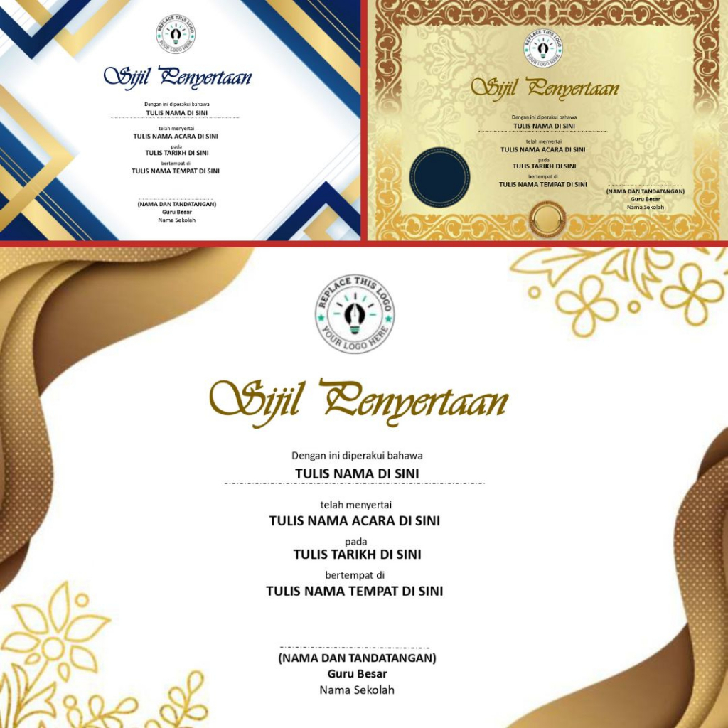 [Powerpoint] 180 Design Template Sijil Certificate Template Editable Powerpoint Elegant Design Landscape Potrait A4