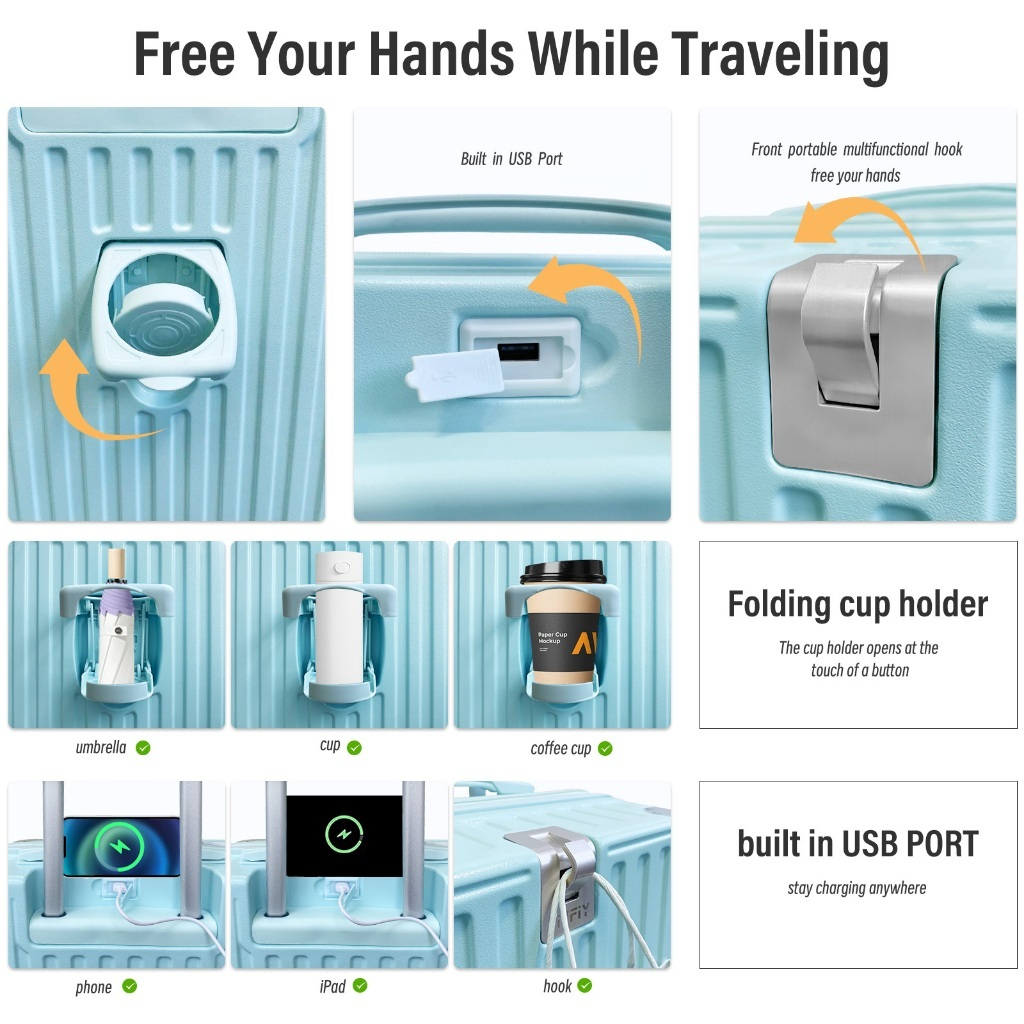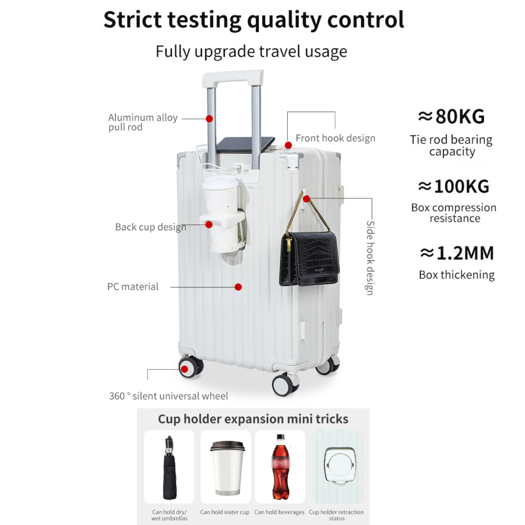 [PREMIUM] Bagasi Luggage with Cup Holder USB Charging Port Suitcase Hand Carry Luggage 20/24/28 INCH